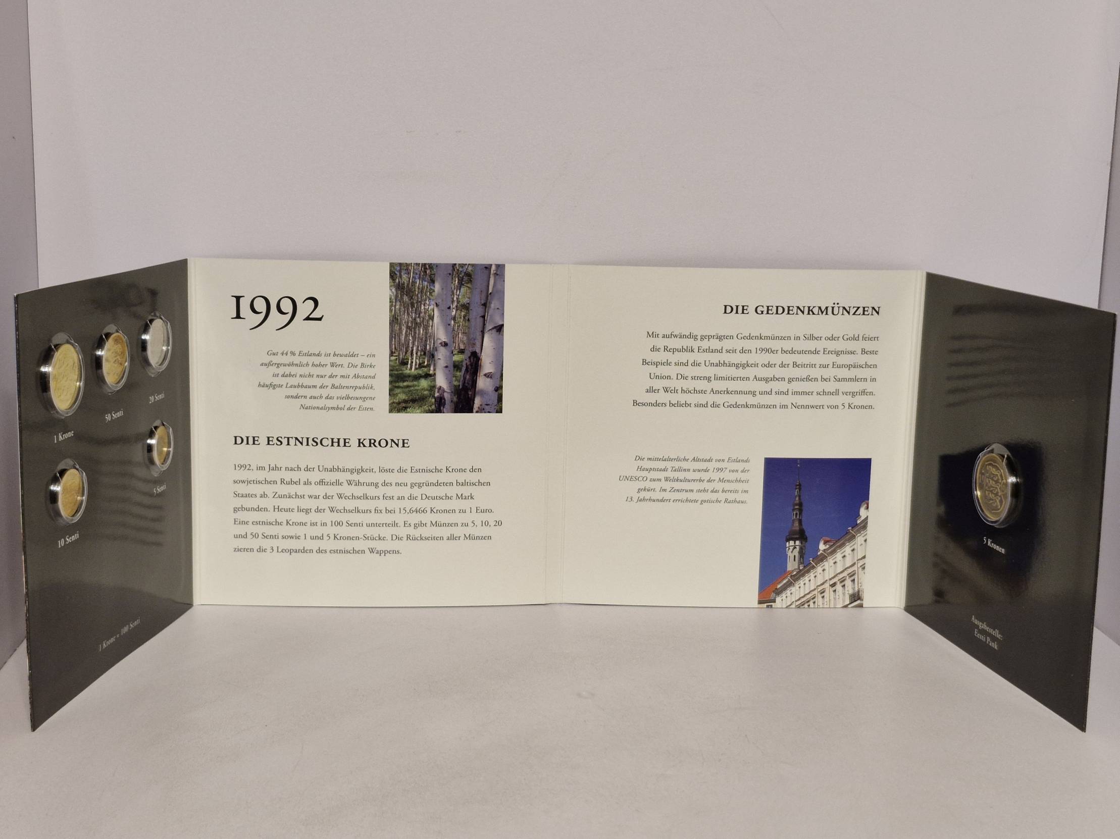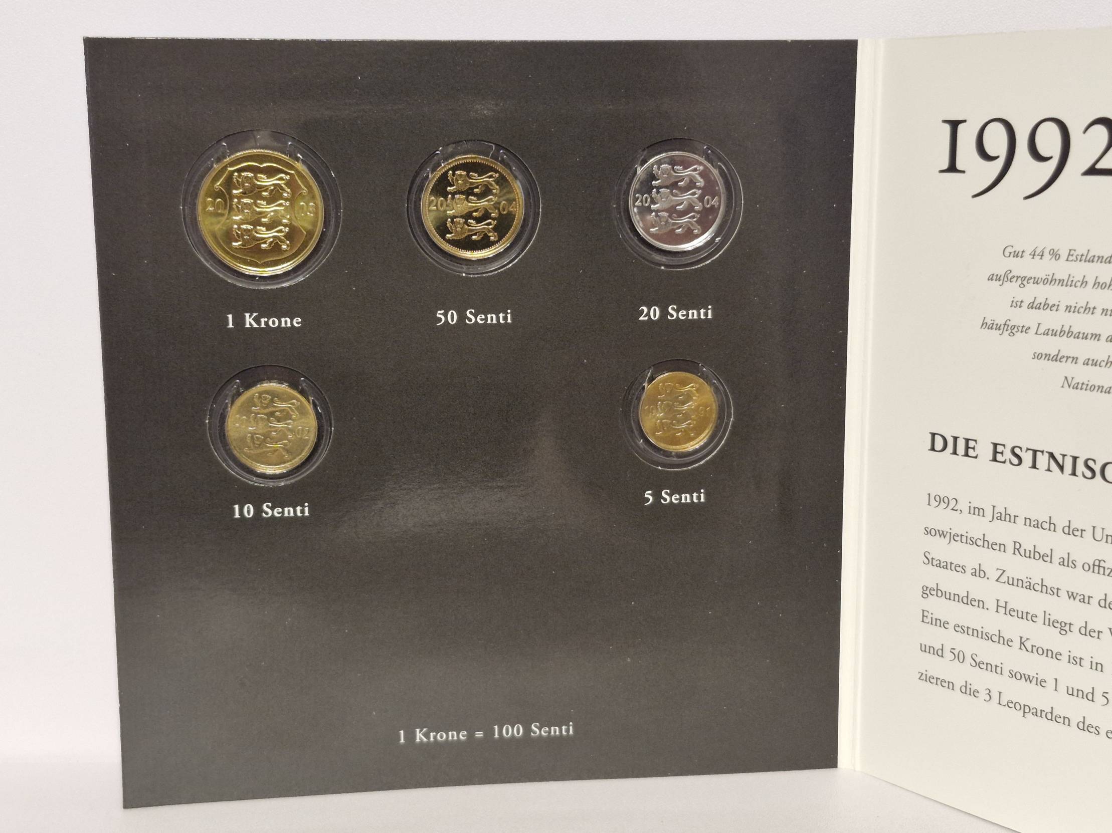 Tai yra Estijos kronų kursinių monetų ir proginės monetos rinkinys iš serijos „Europäische Währungs-Edition“ (liet. „Europos valiutų leidimas“). Šią kolekciją išleido MDM Münzhandelsgesellschaft Deutsche Münze. Prekės būklė matoma foto. Prekės ar prekių kombinuotas siuntimas Lietuvoje 2 EUR