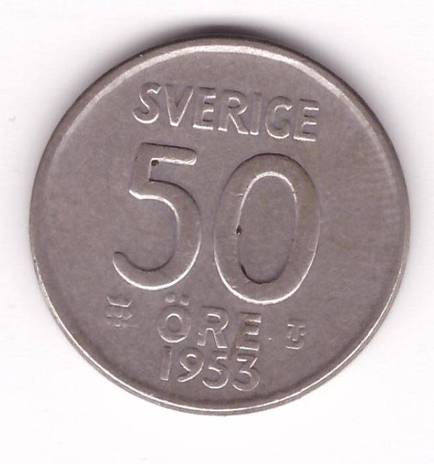 Švedija 50 ore 1953 Ag