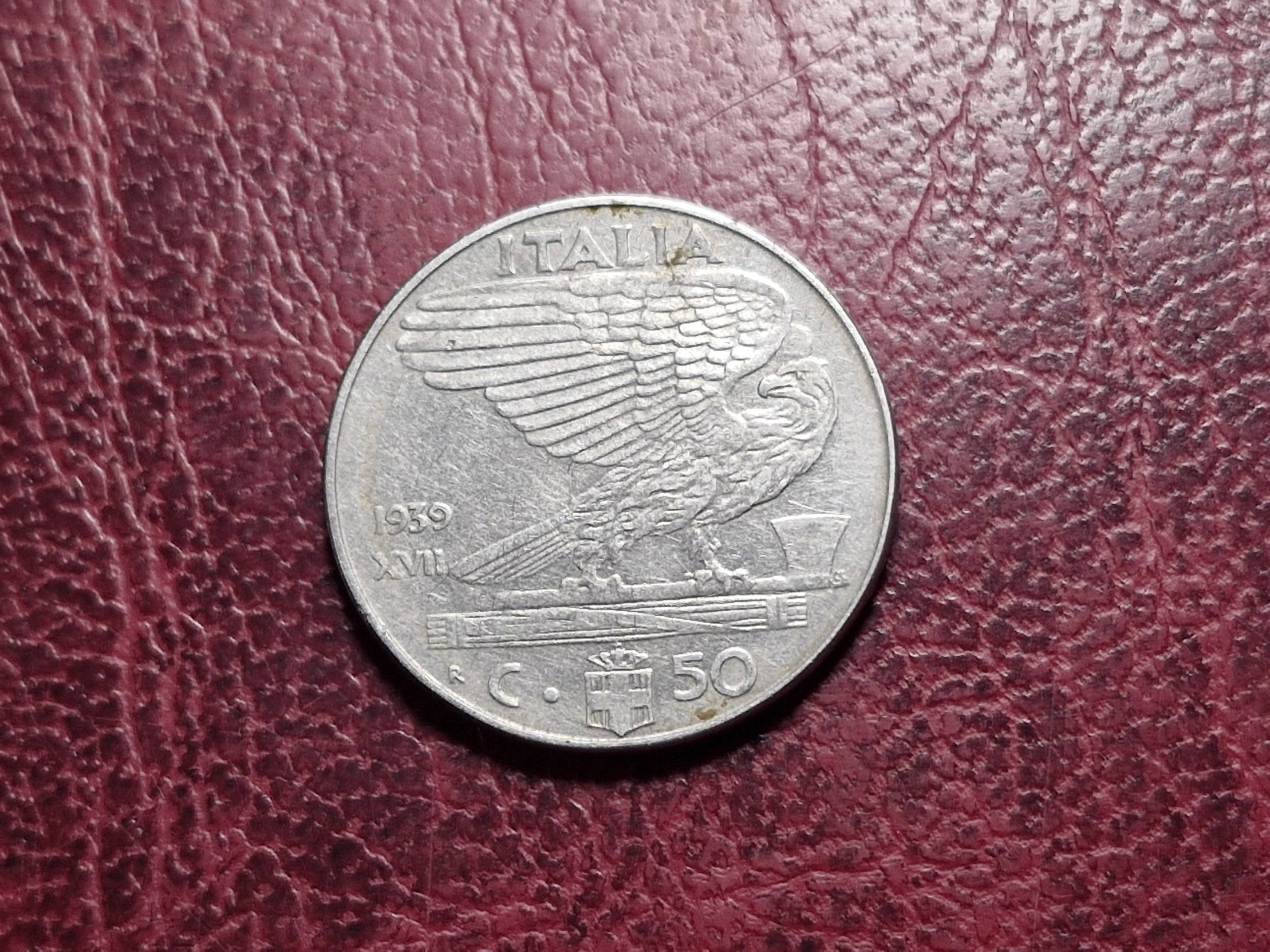 Italija 50 čentezimų, 1939 KM# 76a XVII Nemagnetin