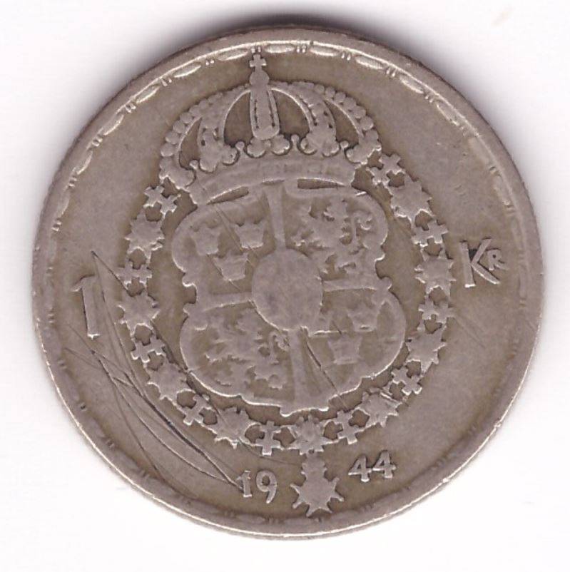 Švedija 1 kr 1944 Ag