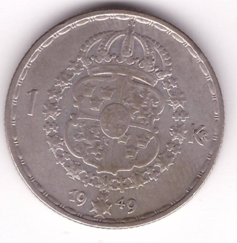 Švedija 1 kr 1949 Ag