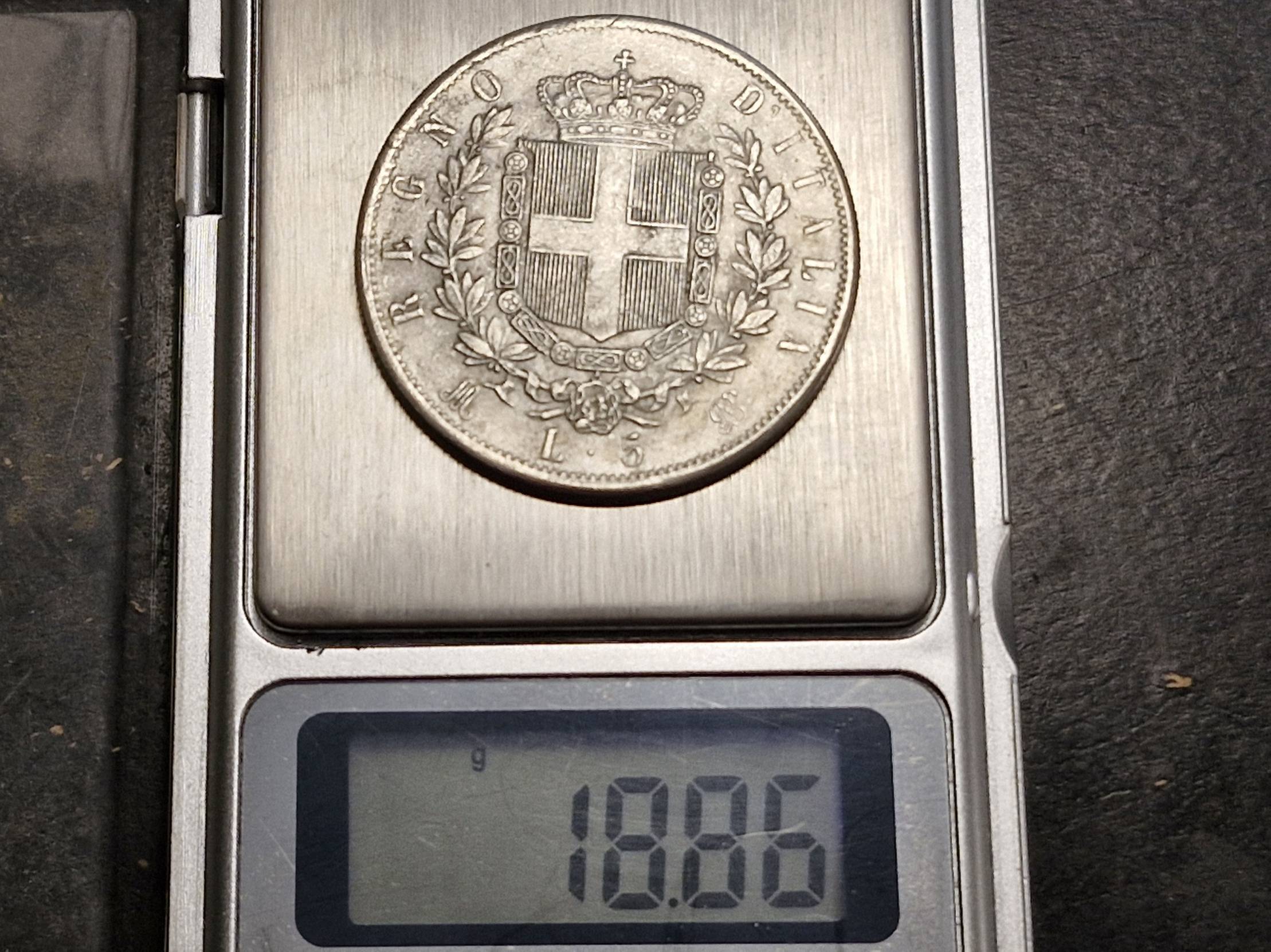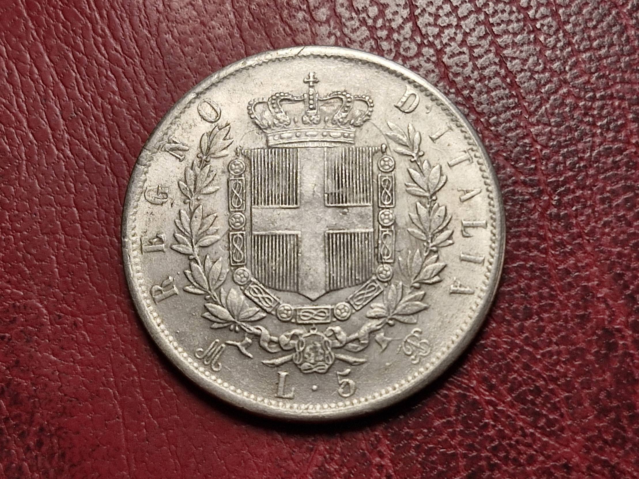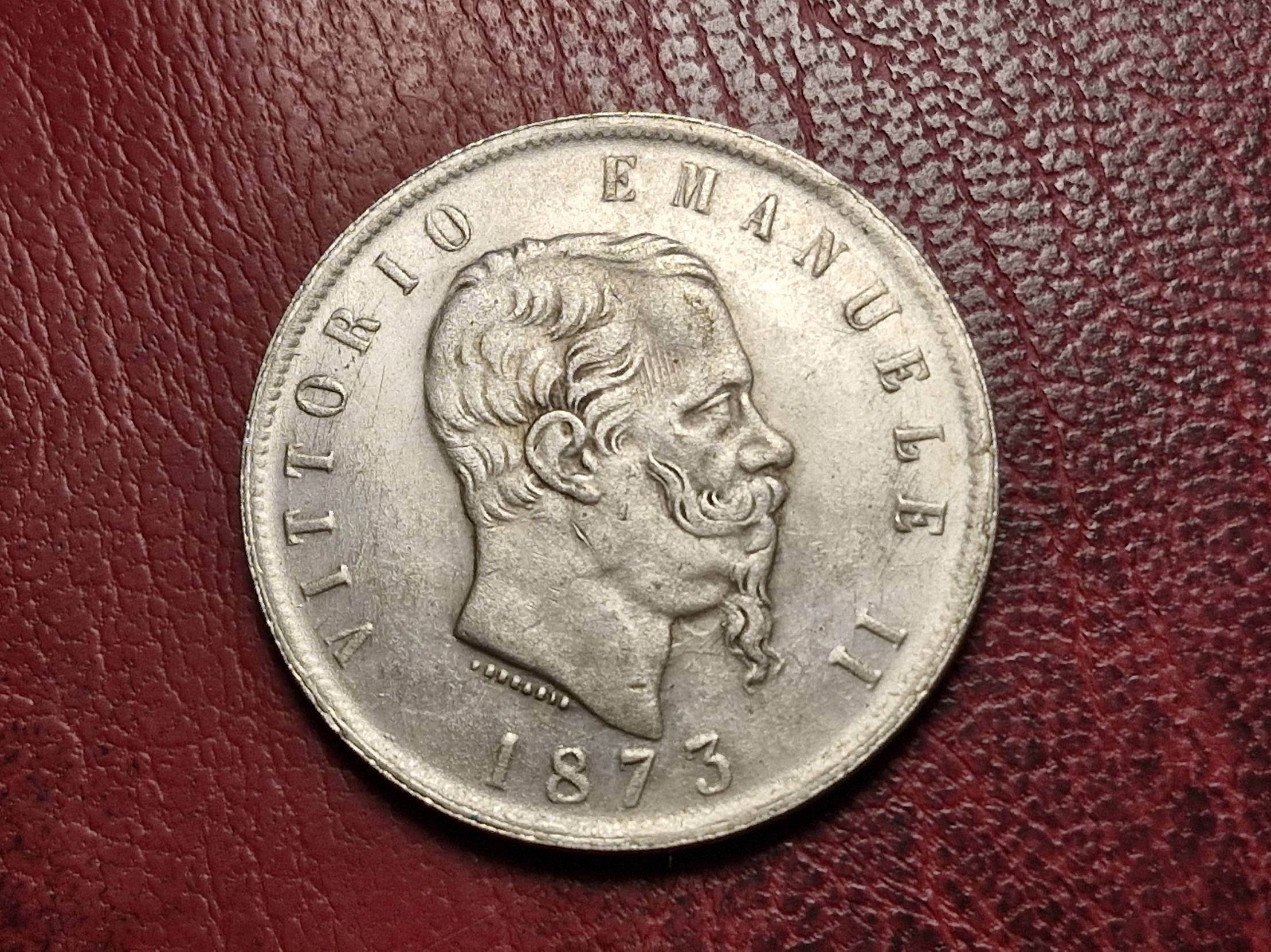 1873, Italy, lira, 5