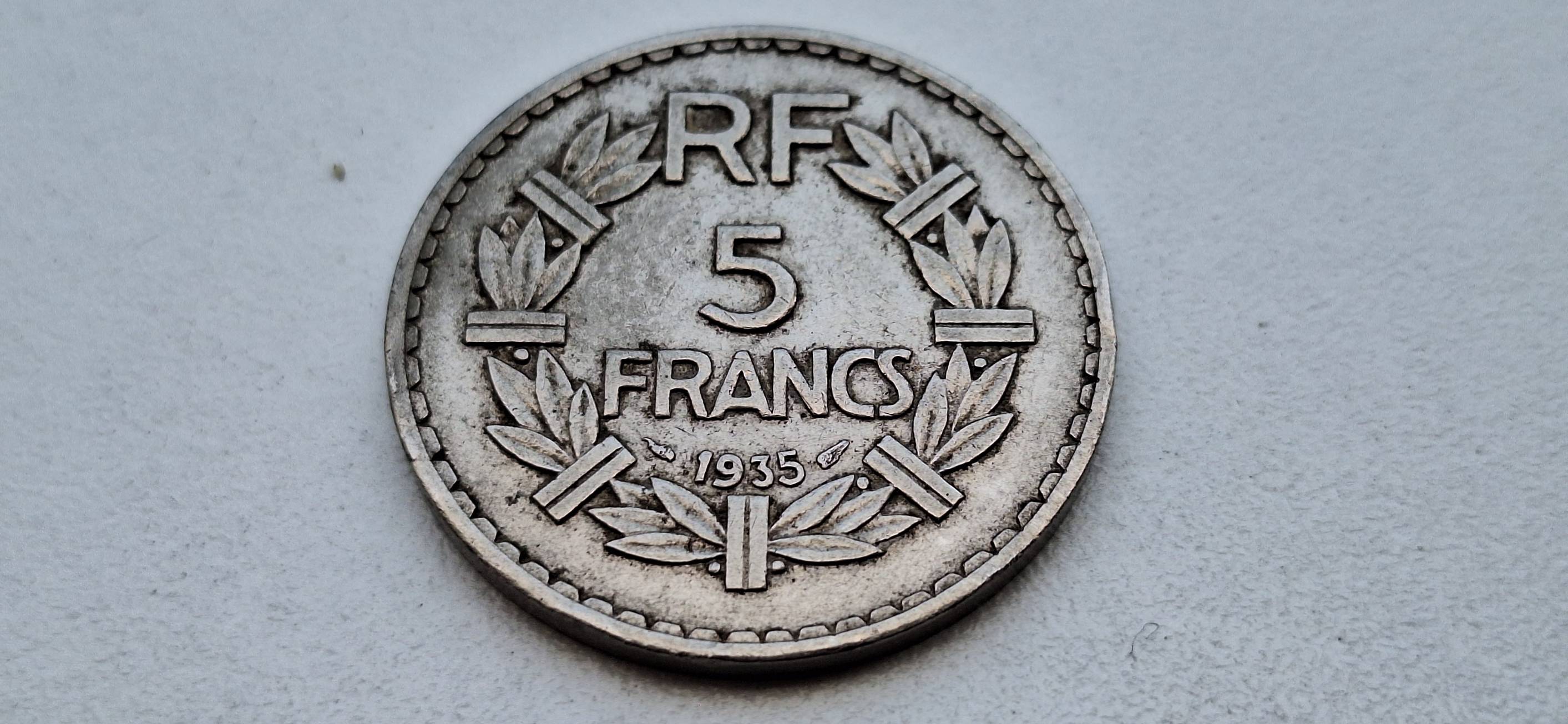 Prancūzija 5 frankai 1935, nikelis