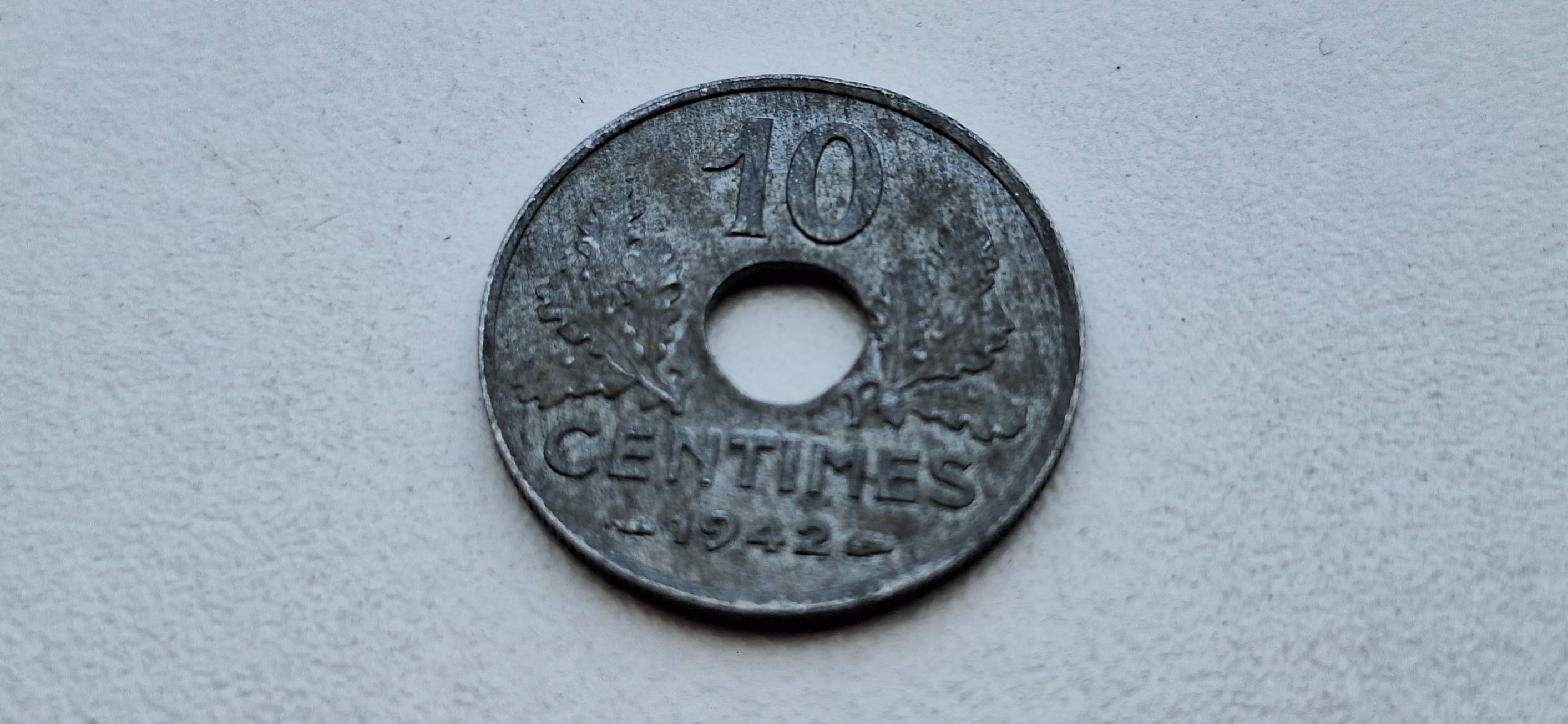 Prancūzija 10 santimų 1942 Zn. (Ėtat Francais)
