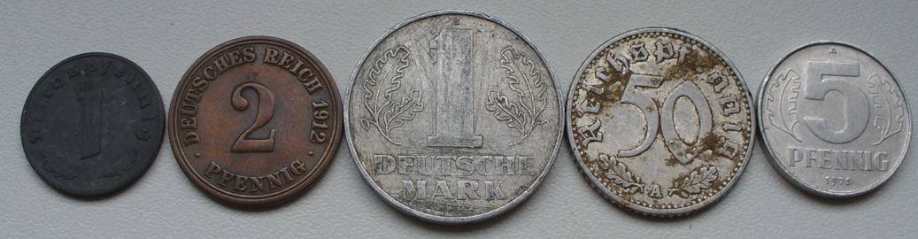 1943 1 PFENNIG A 1912 2 PFENNIG A 1975 5 PFENNIG A 1941 50 PFENNIG A 1962 1 MARK A
