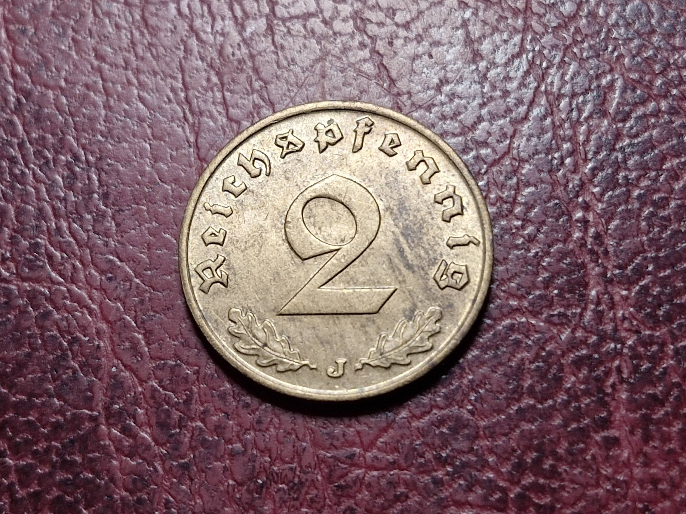 Trečiasis Reichas 2 reichspfenigai, 1938J KM# 90