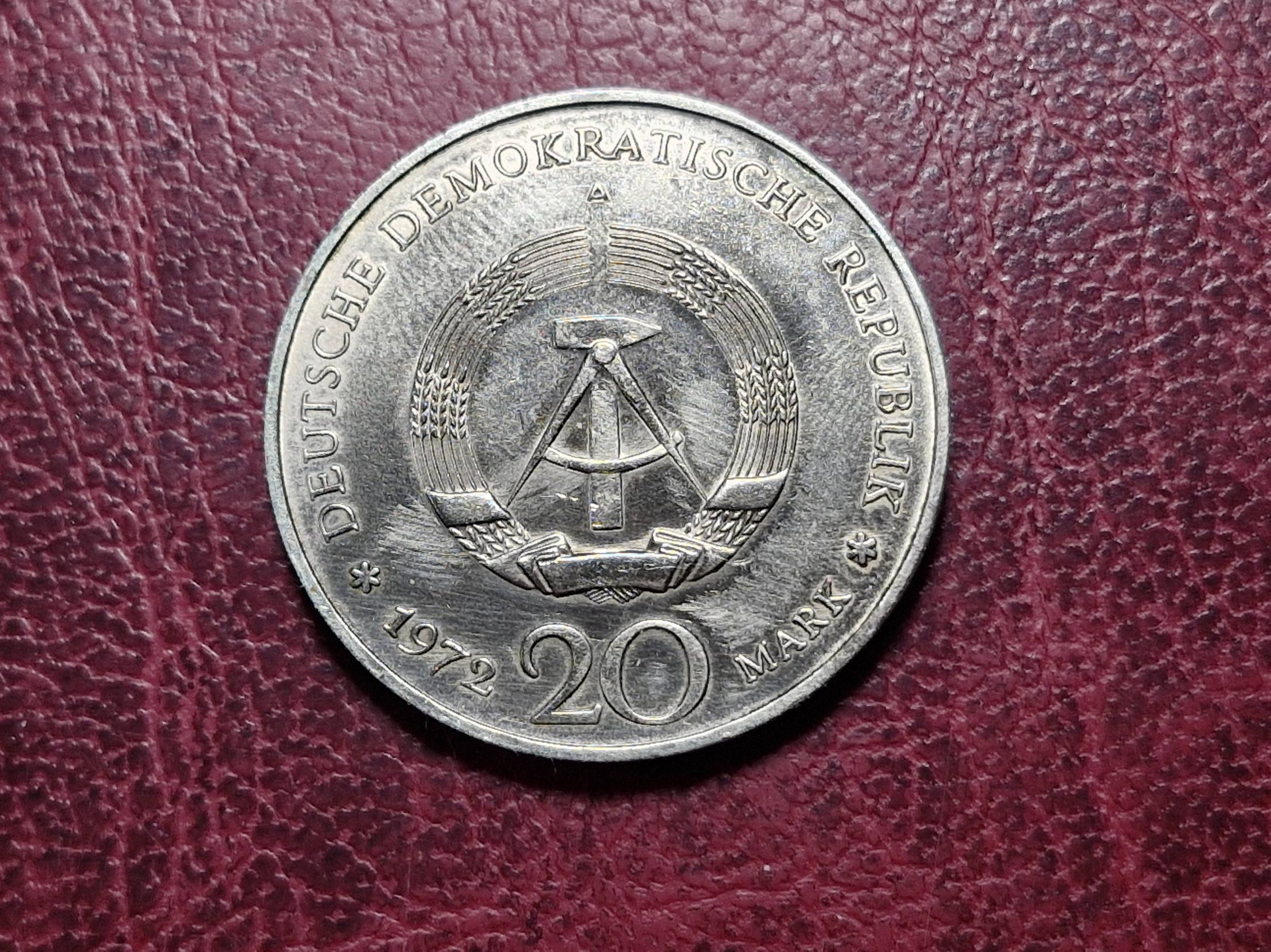 Germany - GDR 20 mark, 1972 KM# 40 Schiller
