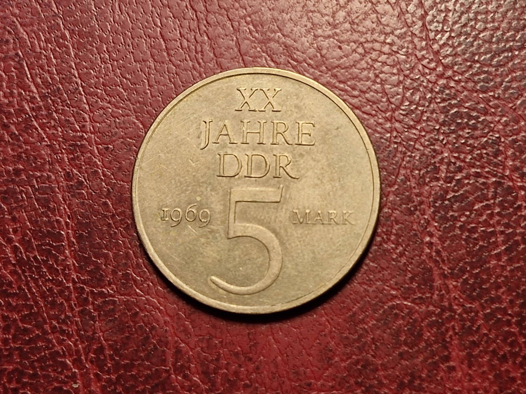 Germany - GDR 5 mark, 1969 KM# 22 20th Anniversary