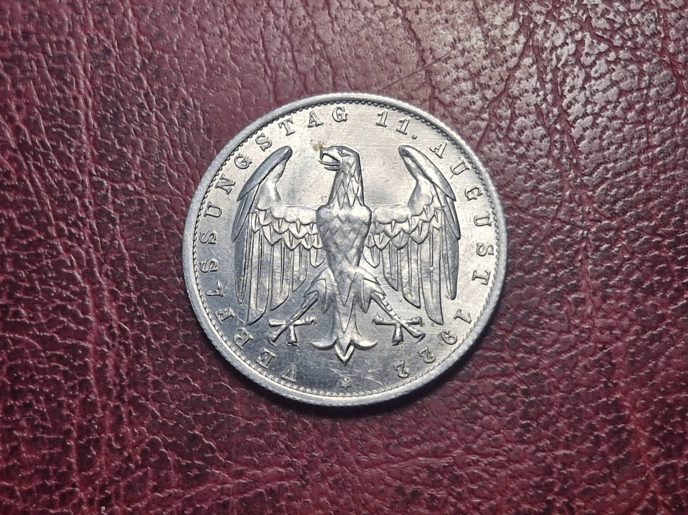Germany 3 mark, 1922A KM# 29 Weimar Constitution