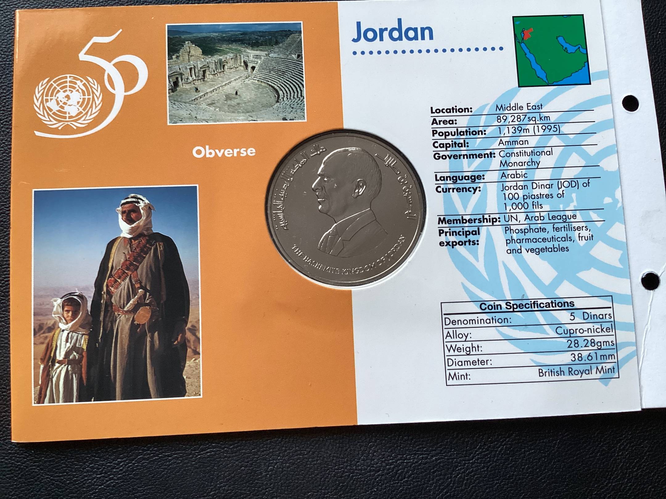 Jordanija 5 dinarai. 1995 spec. pakuote