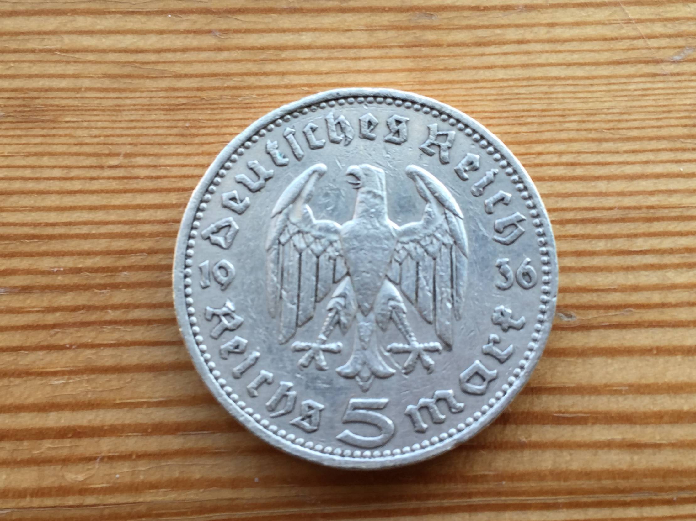 Vokietija 5 Reichmark. 1936m. Nuo 1 euro