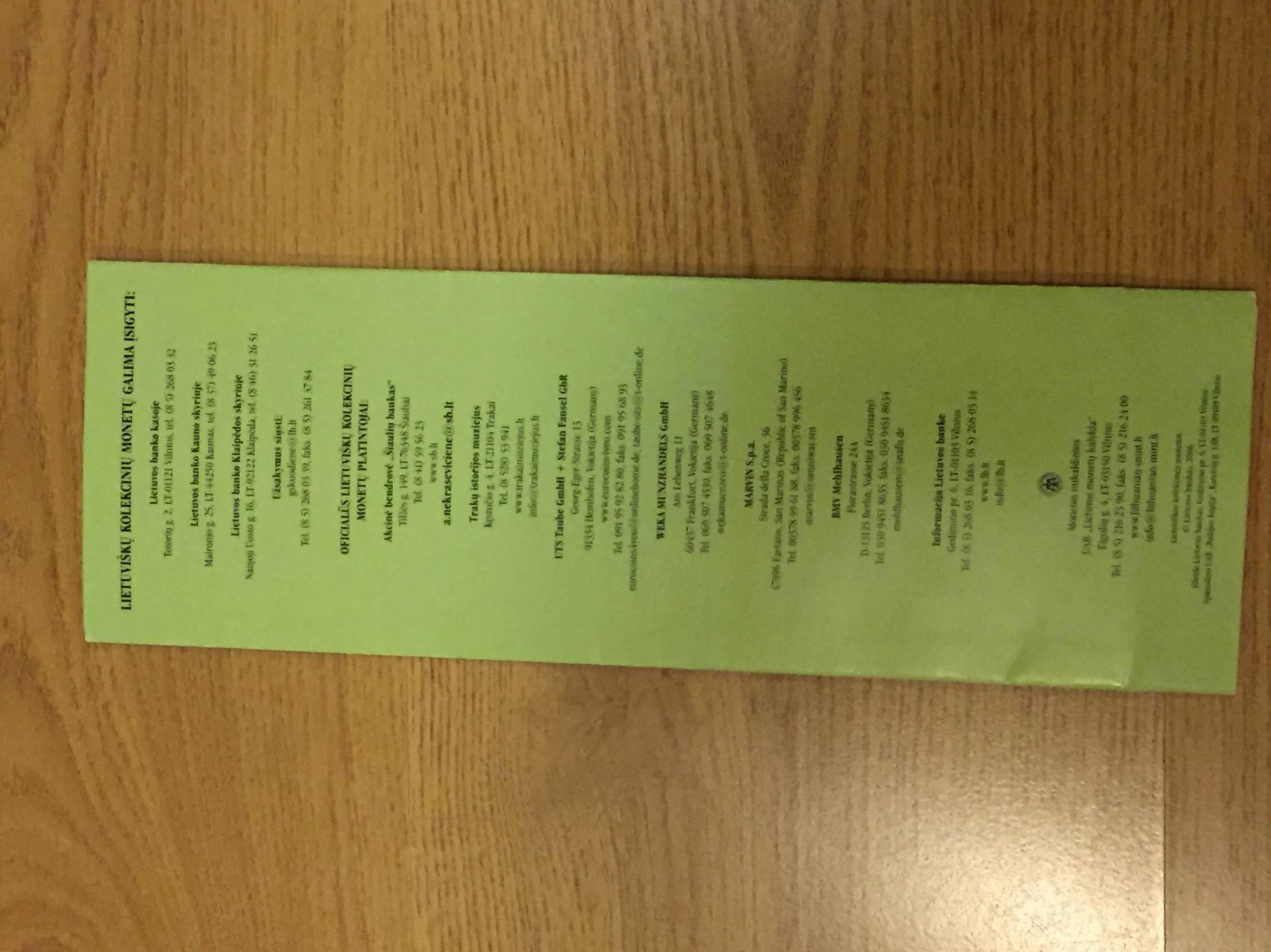 Lankstinukas Lietuviškos kolekc monet. 1993-2006m.