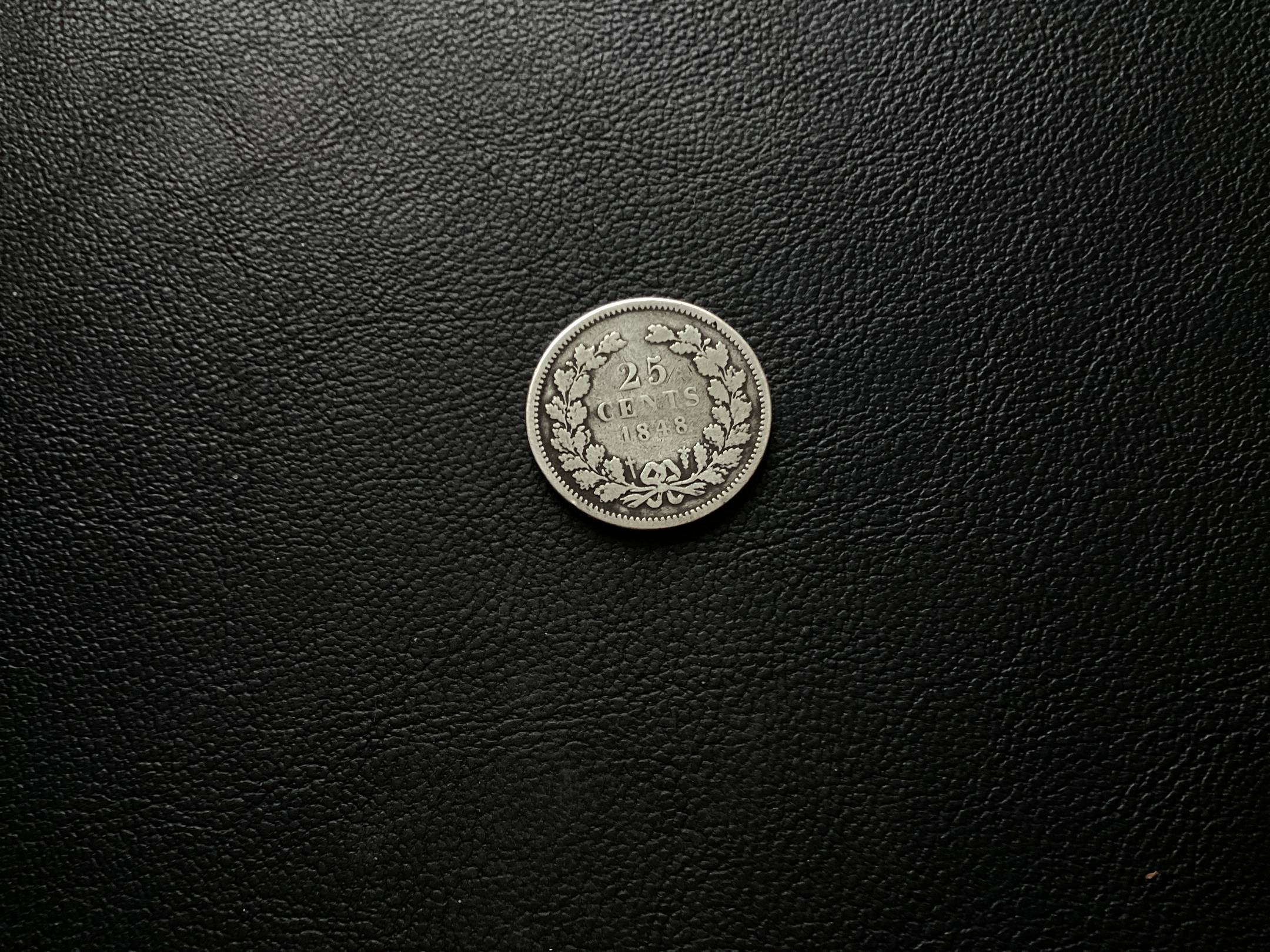 Nyderlandai. 25 centai 1848 Ag Su tasku po datos