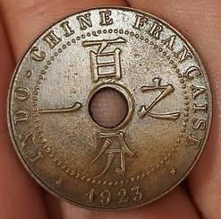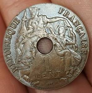 Prancūzų Indokinija 1 centas 1923,thund,KM#12.3,VF