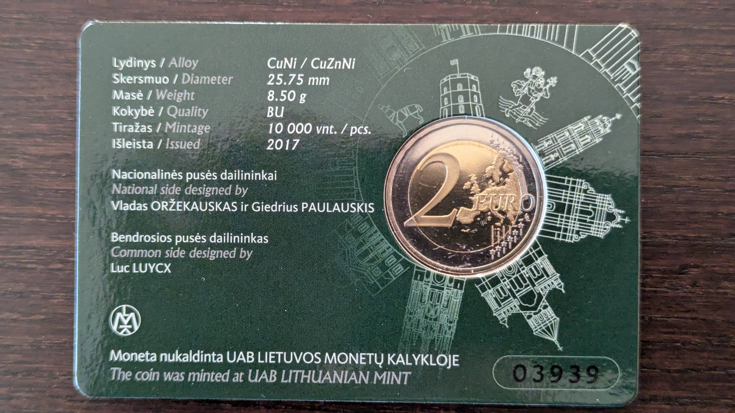 Lietuva 2 eurai Vilnius (kortelėje) 2017