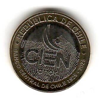 Cile 100 pesos 2025 100-osios Čilės centrinio bank