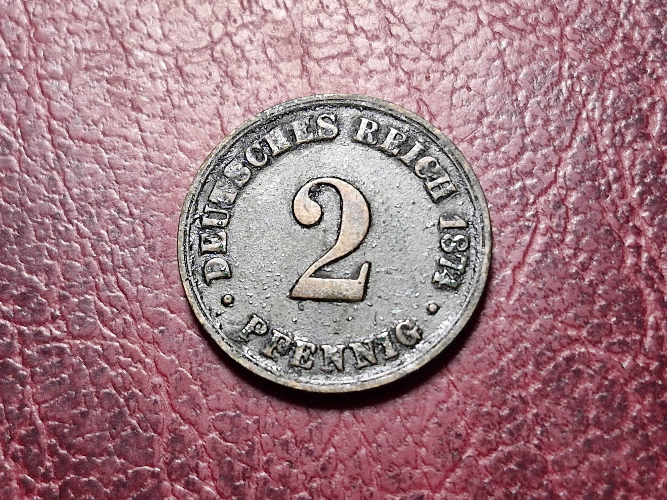 1874, Germany, pfennig, 2