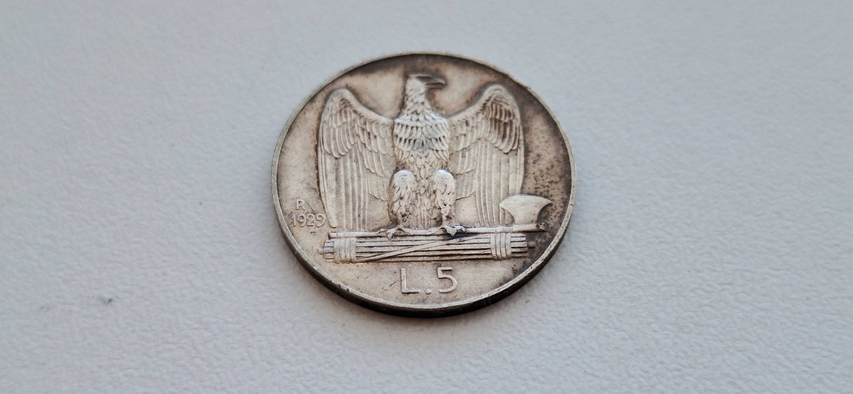 Italija 5 liros 1929, Ag.