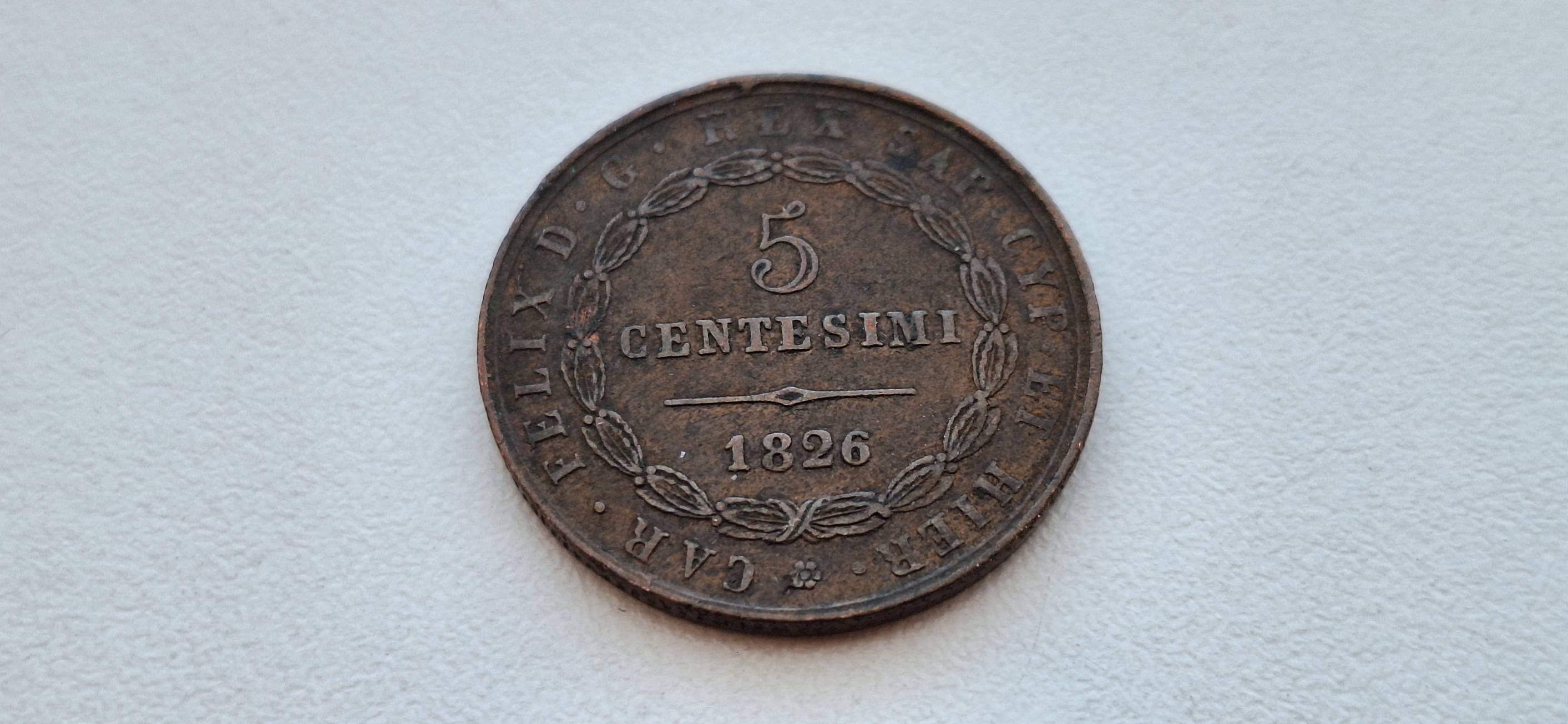Sardinija 5 čentezimai 1826