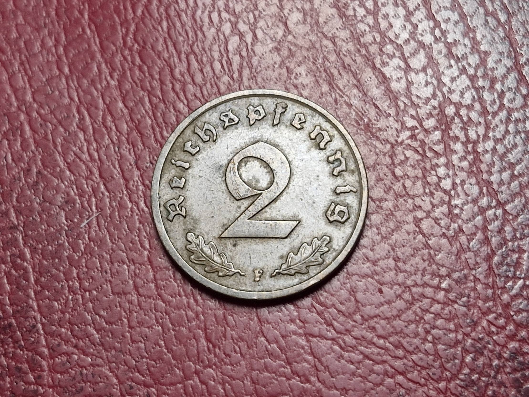 Trečiasis Reichas 2 reichspfenigai, 1939F KM# 90