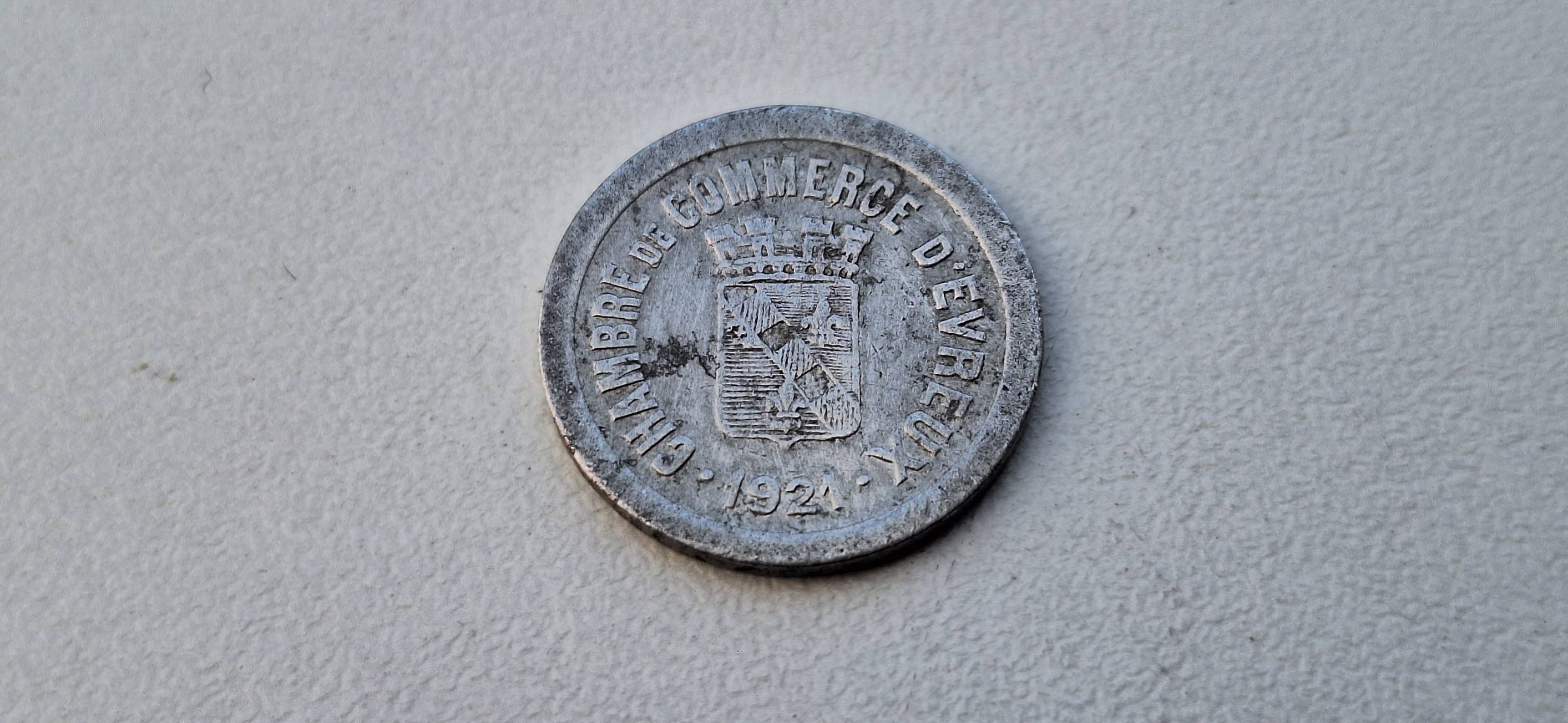 Prancūzijos notgeldas 5 santimai 1921 Evras