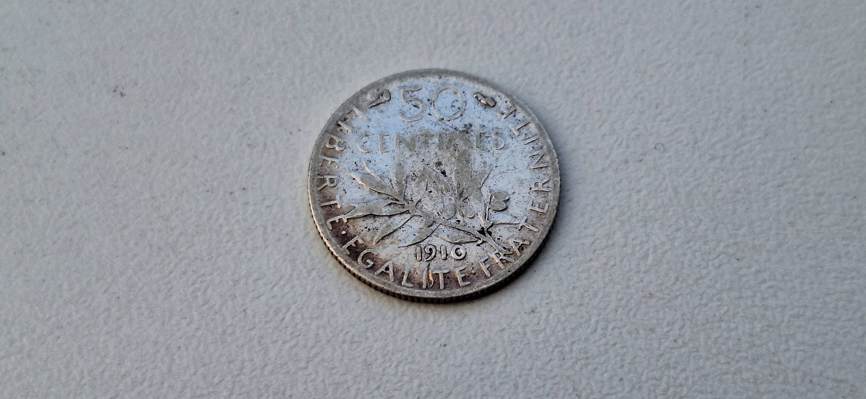 Prancūzija 50 santimų 1910, Ag.