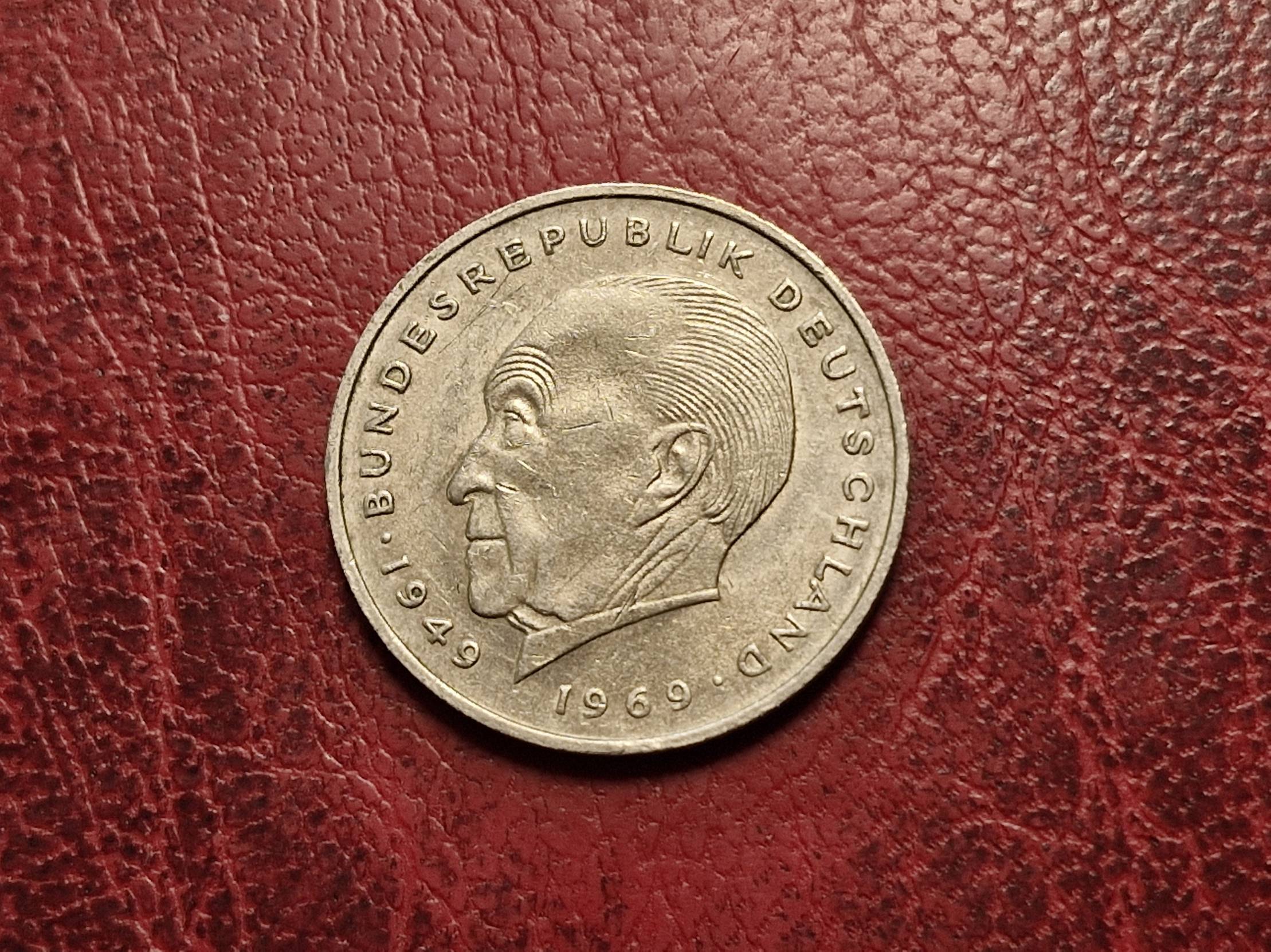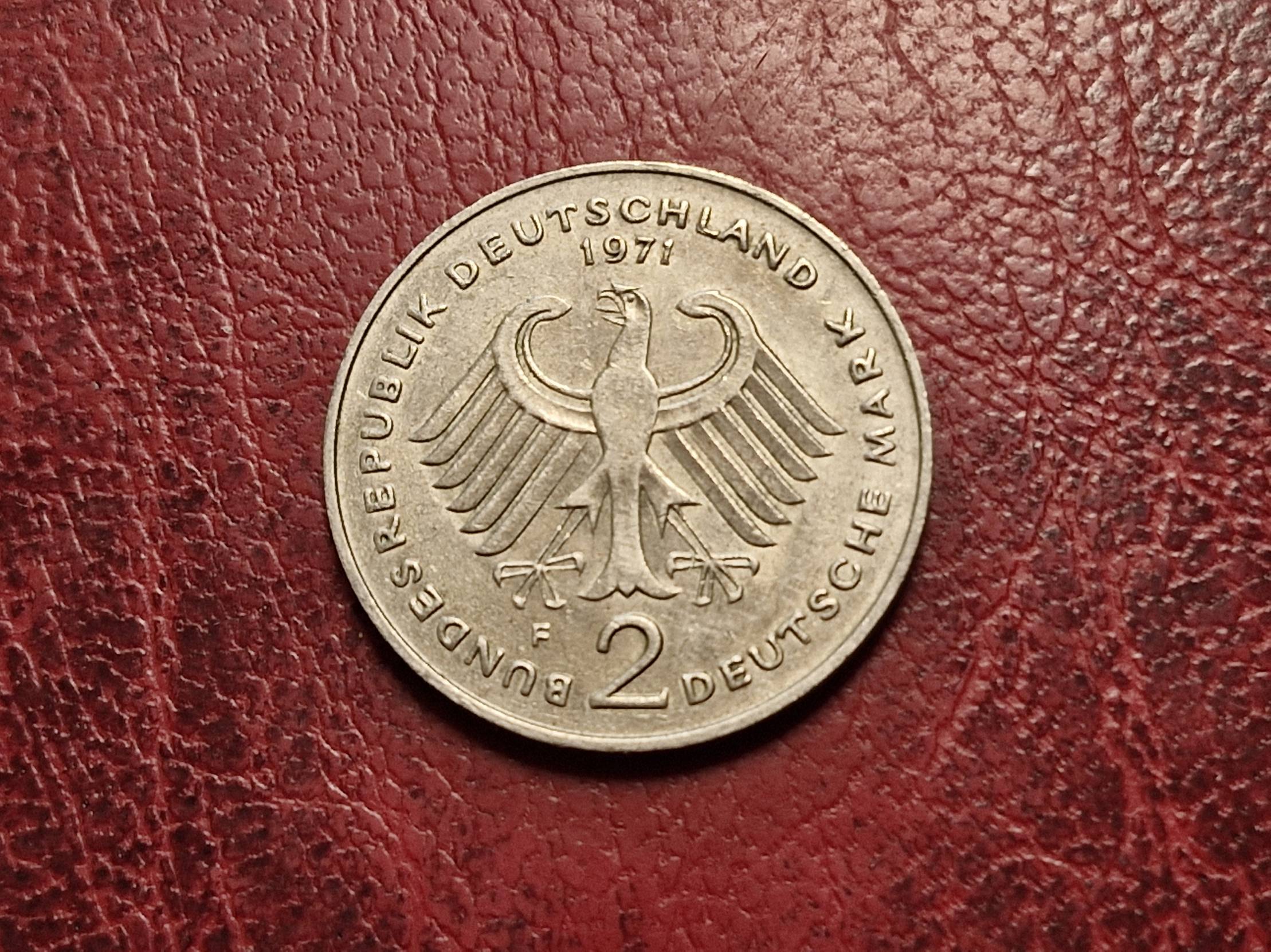 Vokietija 2 markės, 1971F KM# 124 Adenaueris