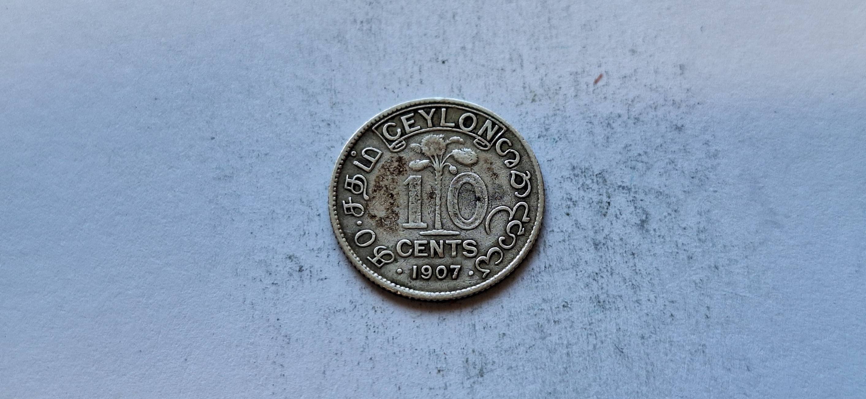 Ceilonas 10 centų 1907, Ag.
