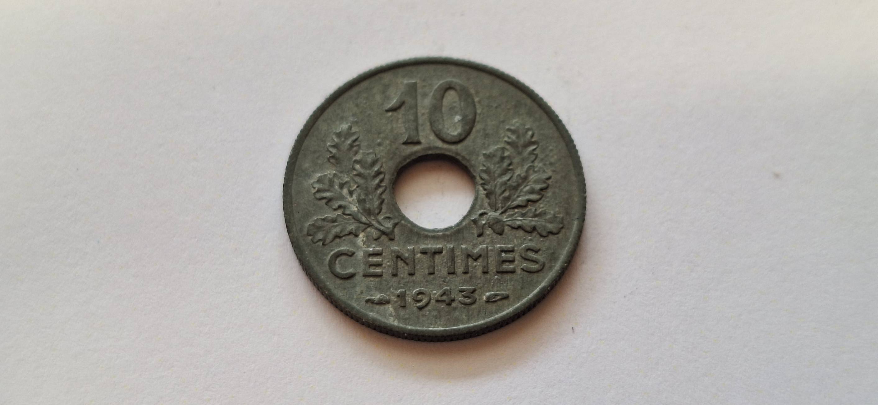Prancūzija 10 santimų 1943 Zn.