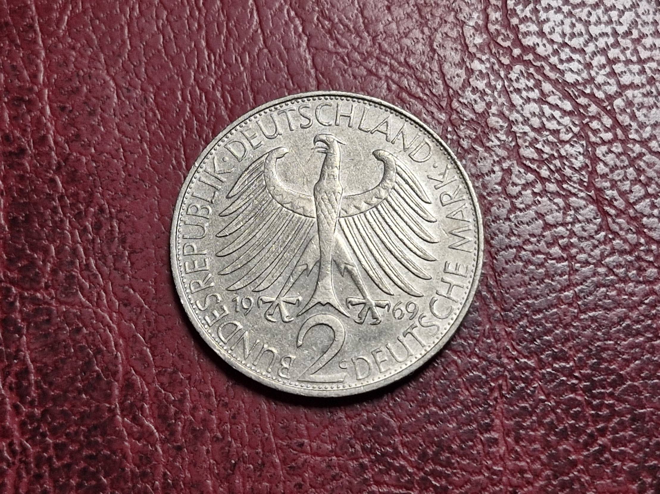 Vokietija 2 markės, 1969G KM# 116 Maksas Plankas