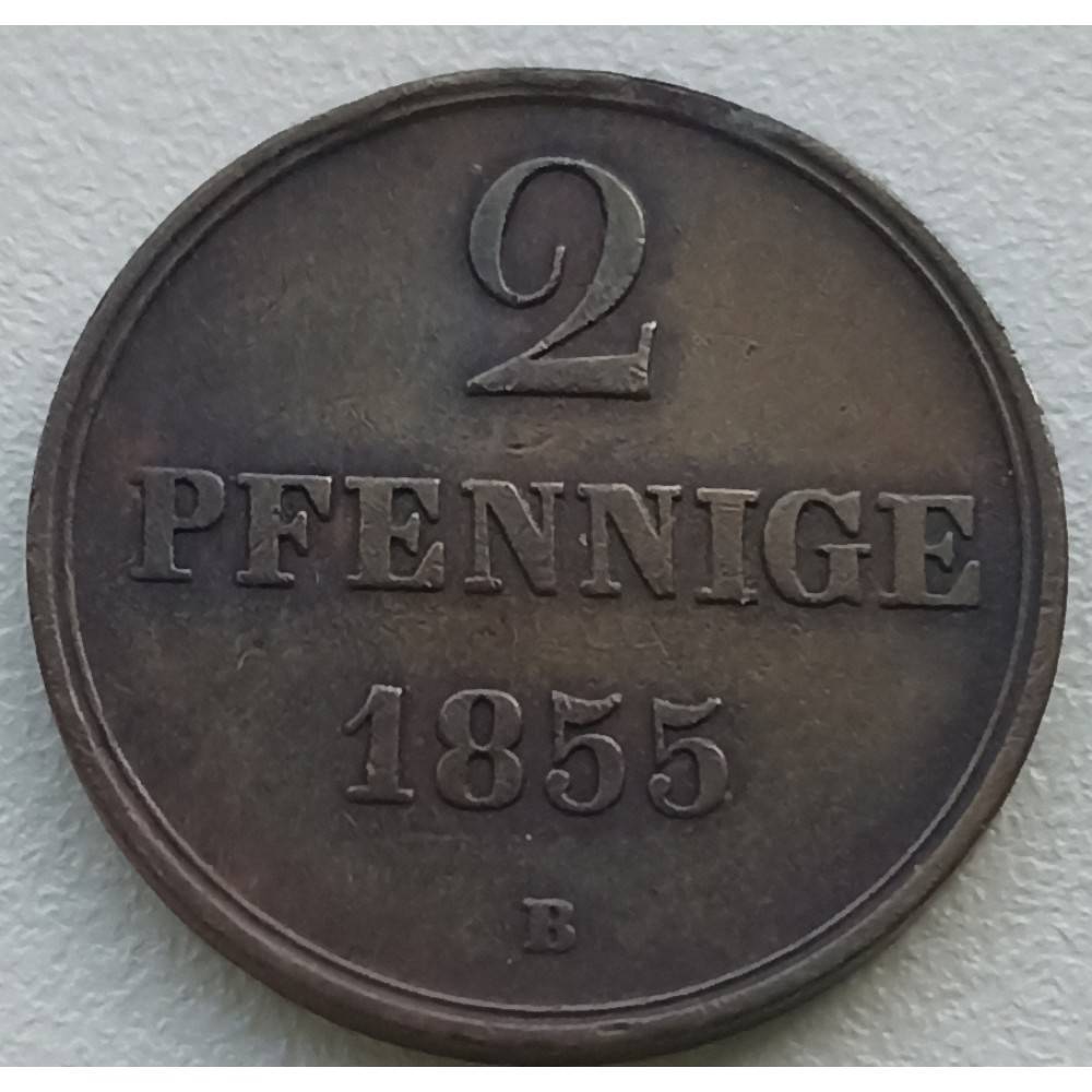 Vokietija. Hanoveris. 2 pfeningai 1855