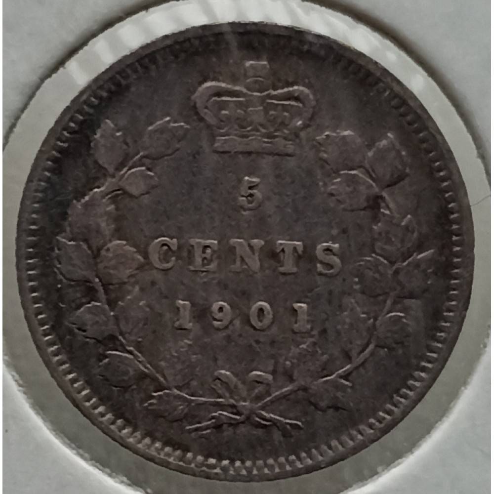 Kanada. 5 centai 1901 m. Sidabras KM2