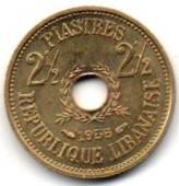 Libanas. 2 1/2 piastro ( 1955 ) XF