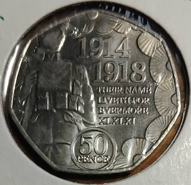 Meno sala 50 pensų 2018 WW1 Armistice,KM#1620,Unc