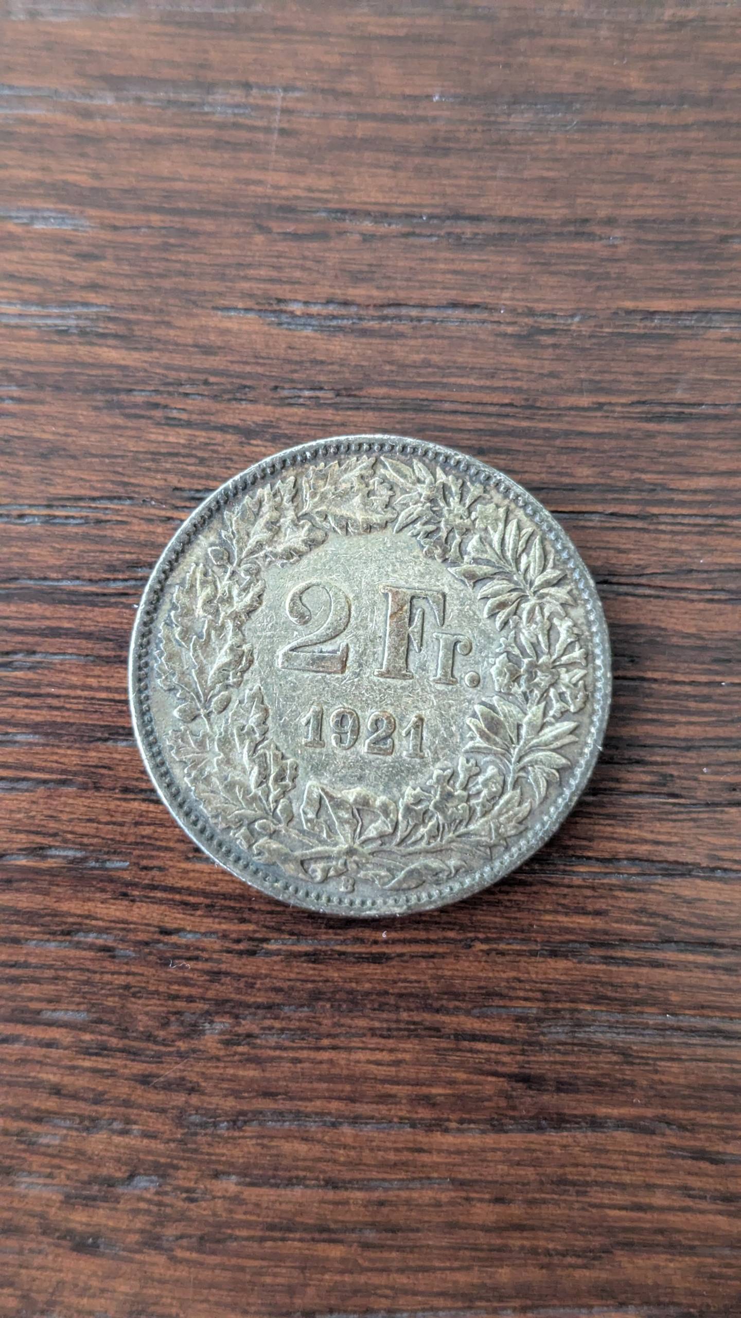 Šveicarija 2 francs B 1921