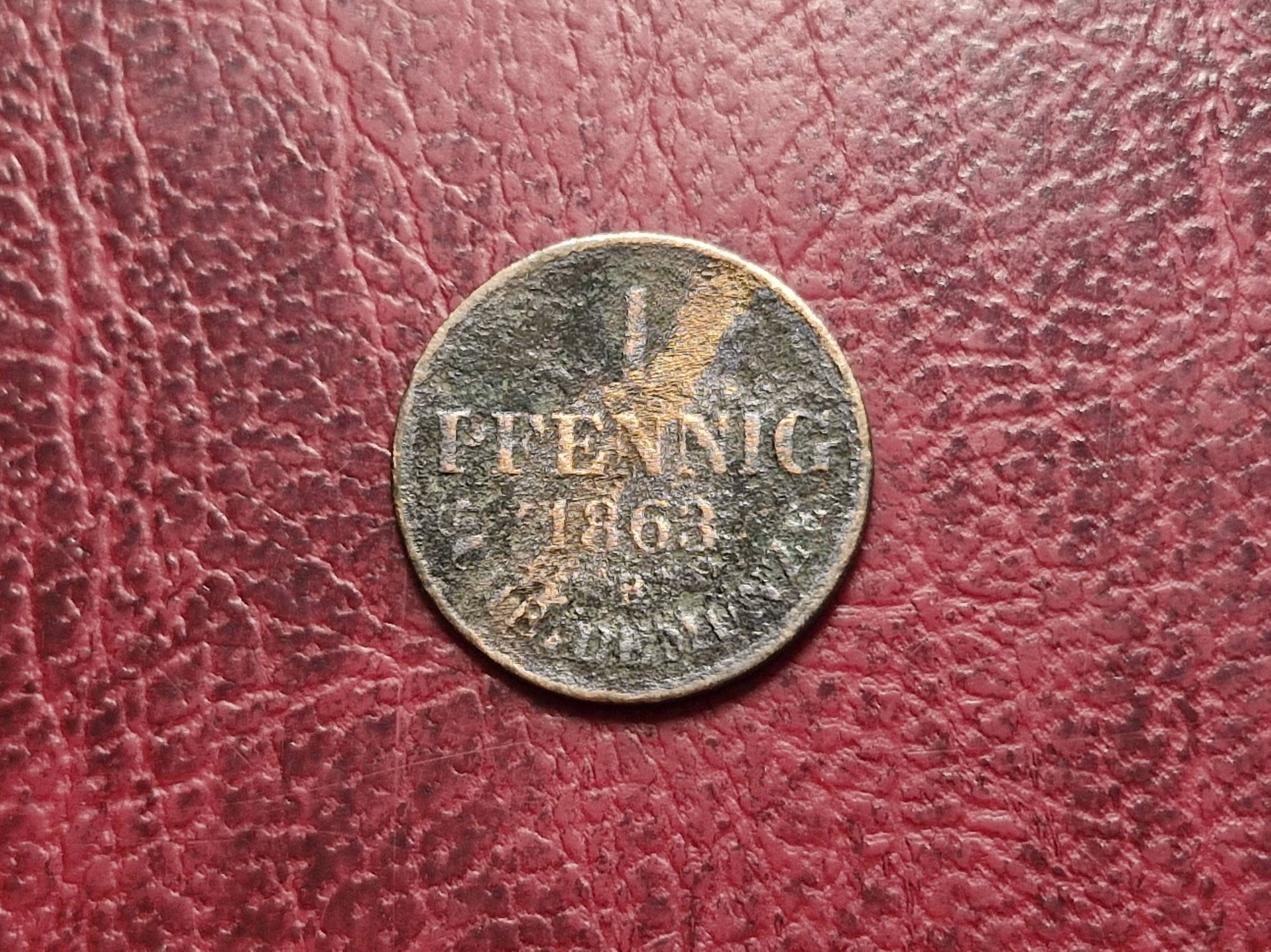 1863, Germany, pfennig, 1