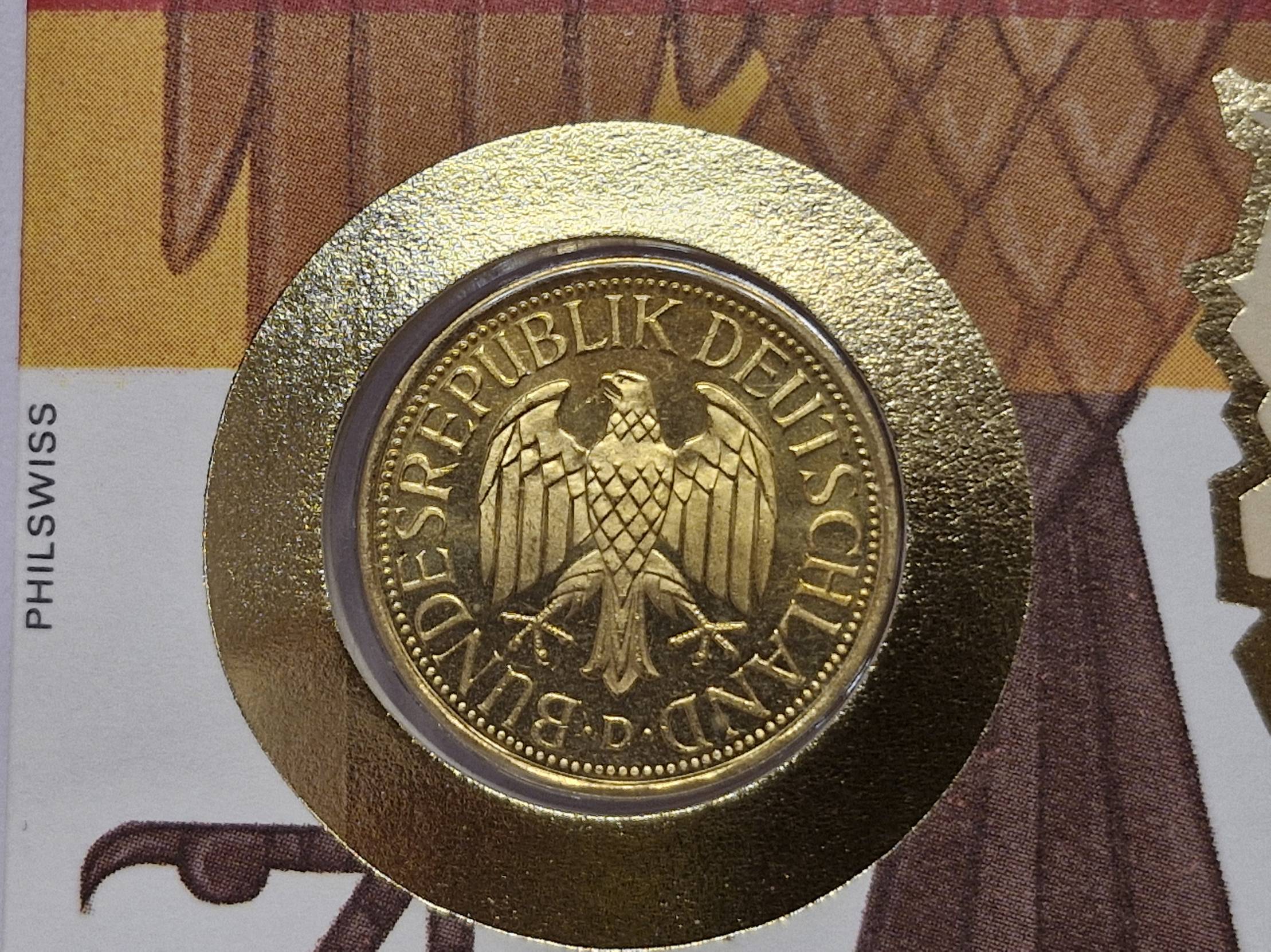 Vokietija 1 markė, 1991D KM# 110 Numizmatin. voke