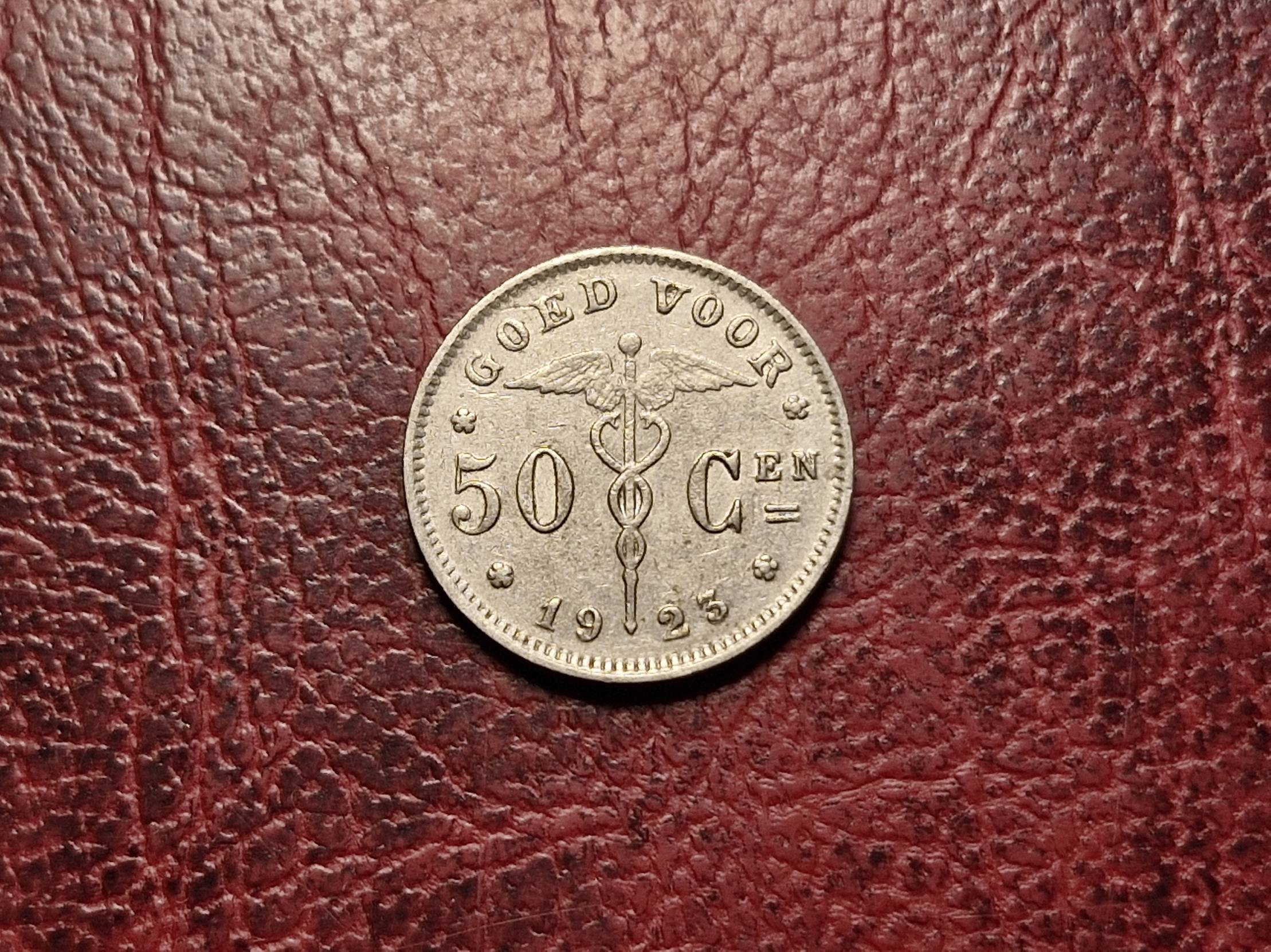 Belgija 50 santimų, 1923 KM# 88 „BELGIË“
