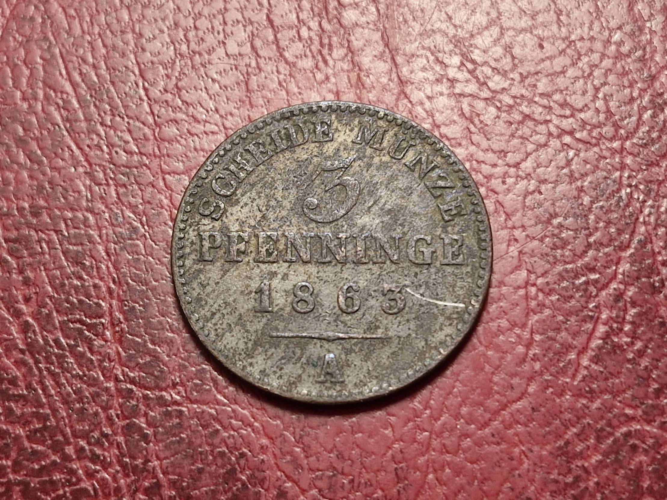 1863, Germany, pfennig, 3