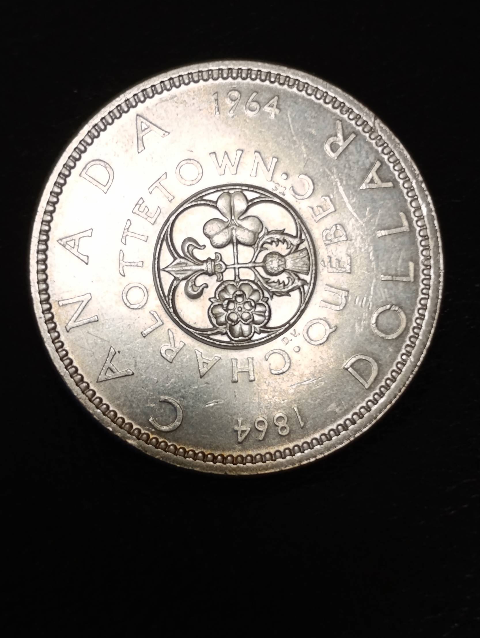 Kanados 1 dolerio (Silver Dollar) moneta, 1964 m., 100 metų nuo Šarloteno (Charlottetown) konferencijos
