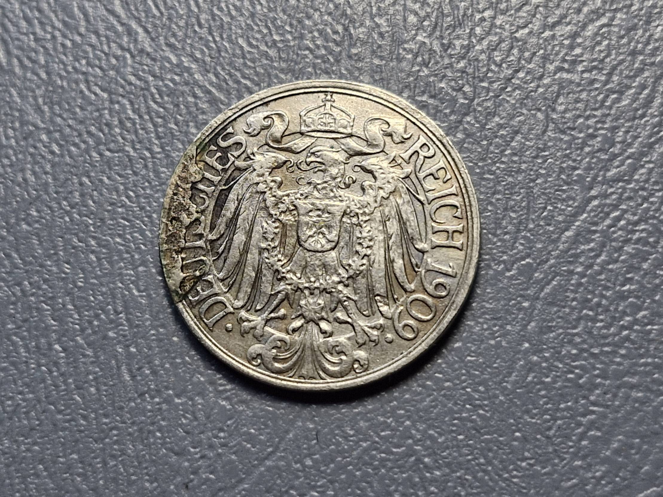 Vokietija 25 pfenigai, 1909F KM# 18