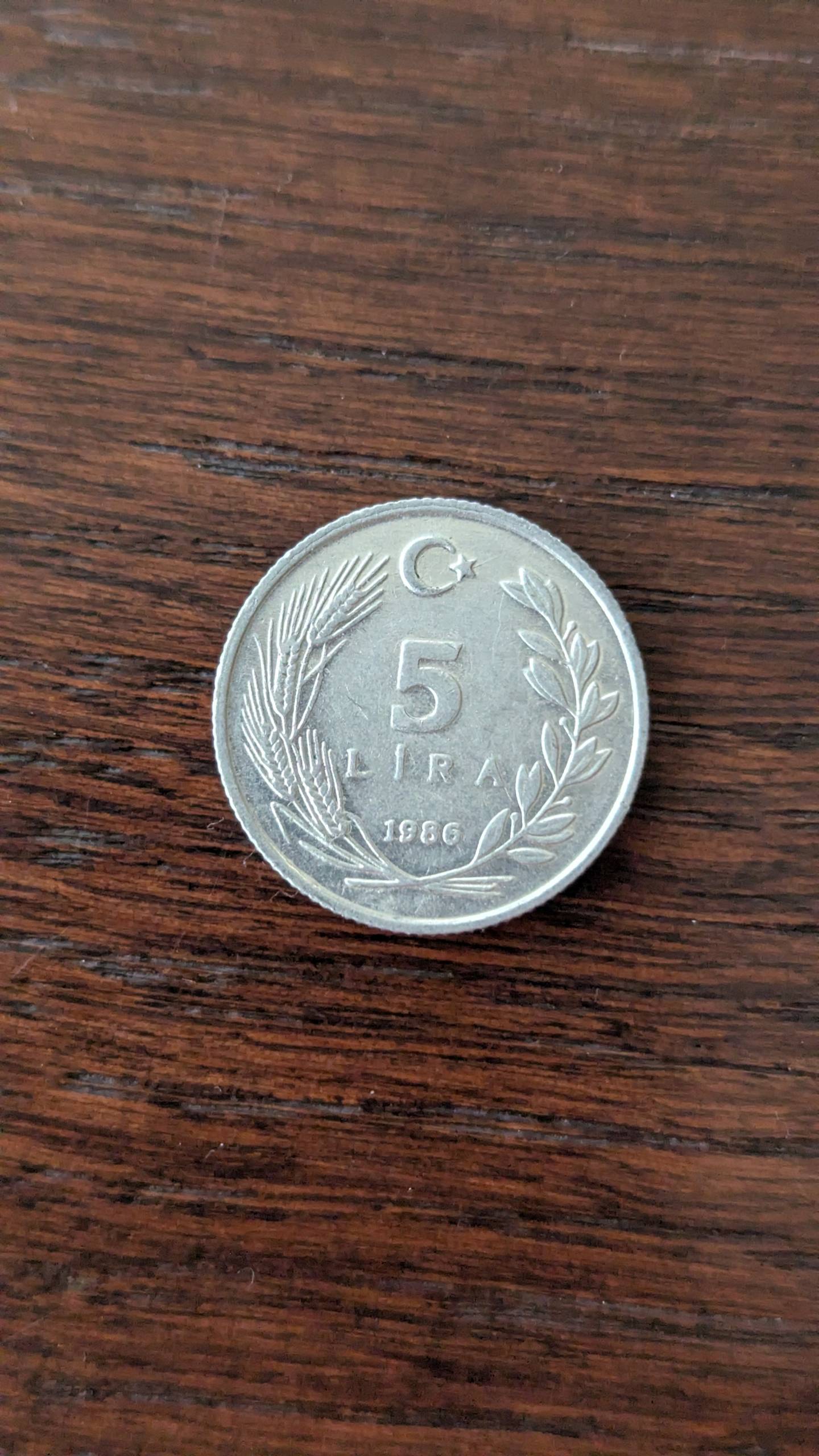1986, Turkey, lira, 5