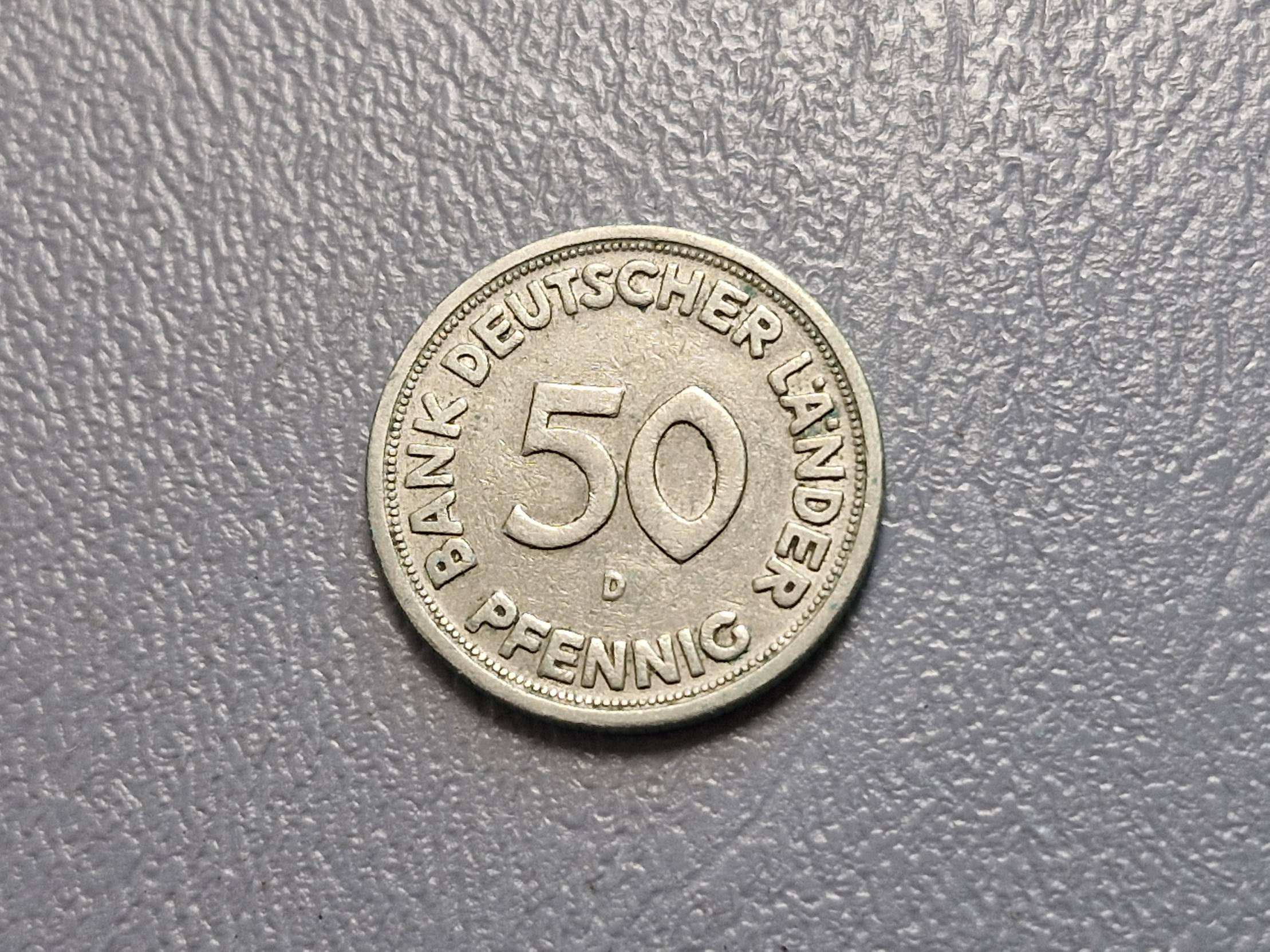 Vokietija 50 pfenigų, 1949D KM# 104