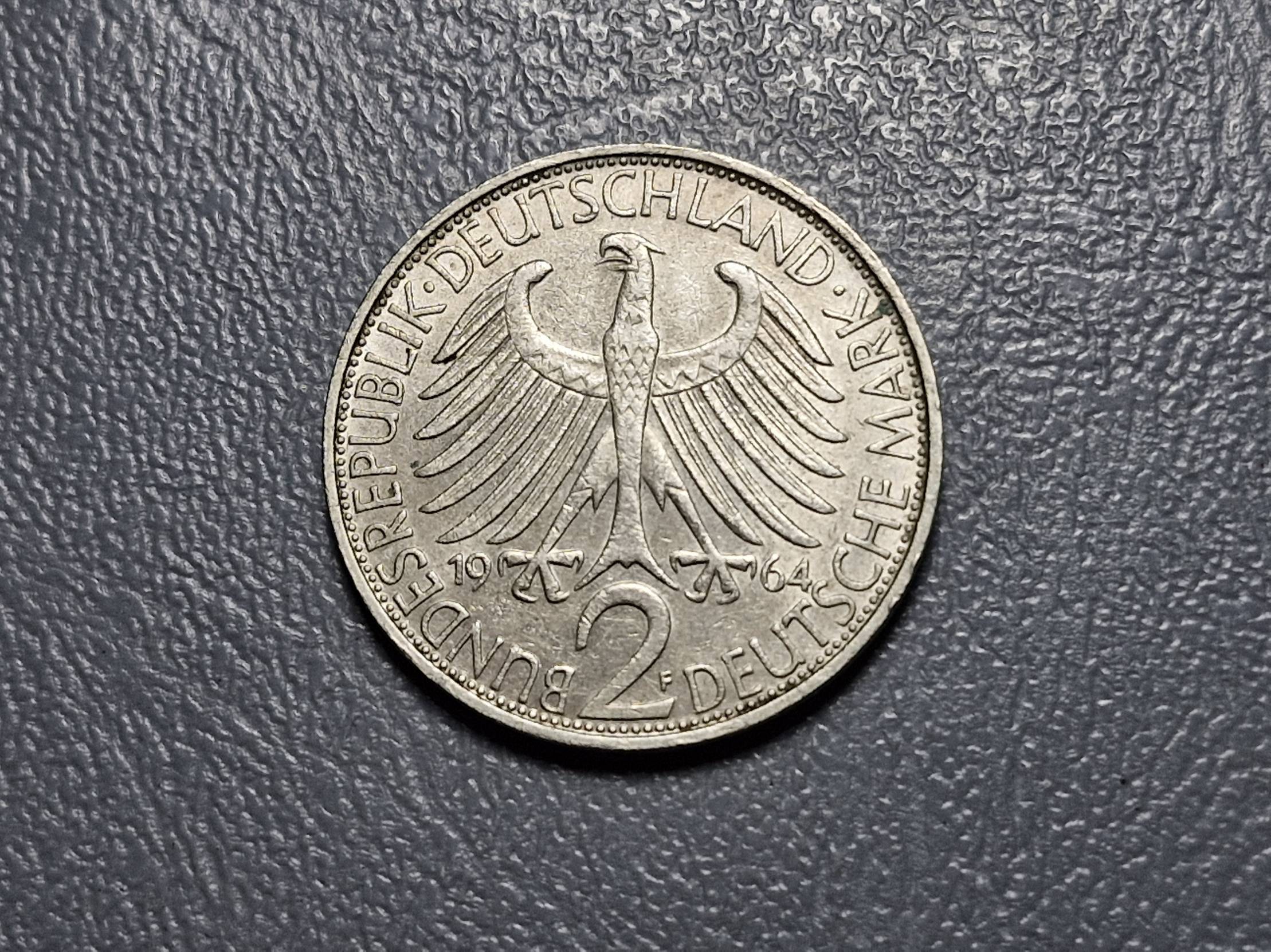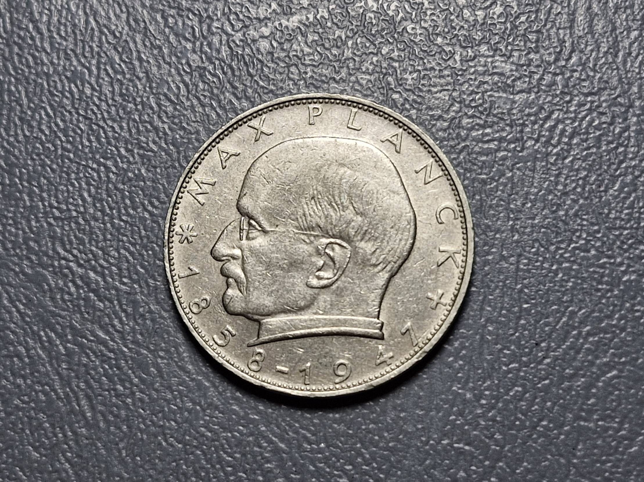 Vokietija 2 markės, 1964F KM# 116 Maksas Plankas