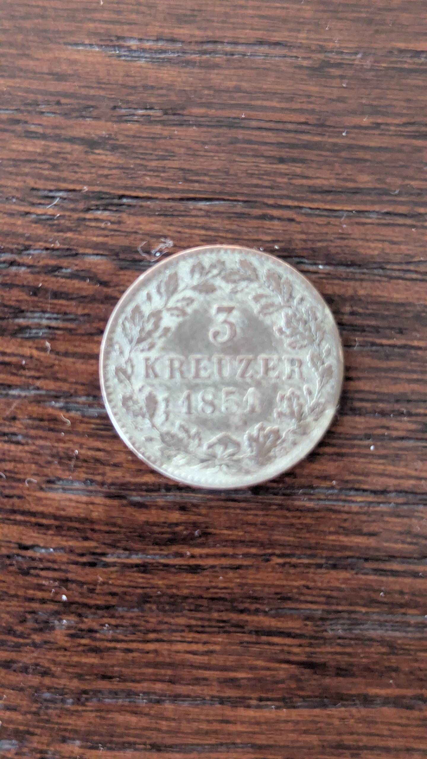 Vokietija 3 kreuzer 1851 (Wurttemberg)