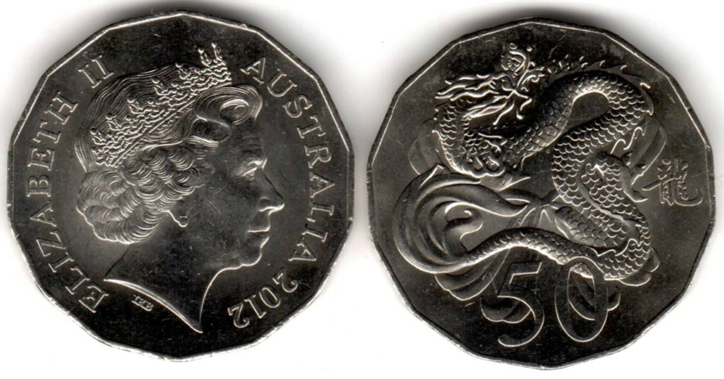 Australija 50 pence 2012 Drakono metai 10,0