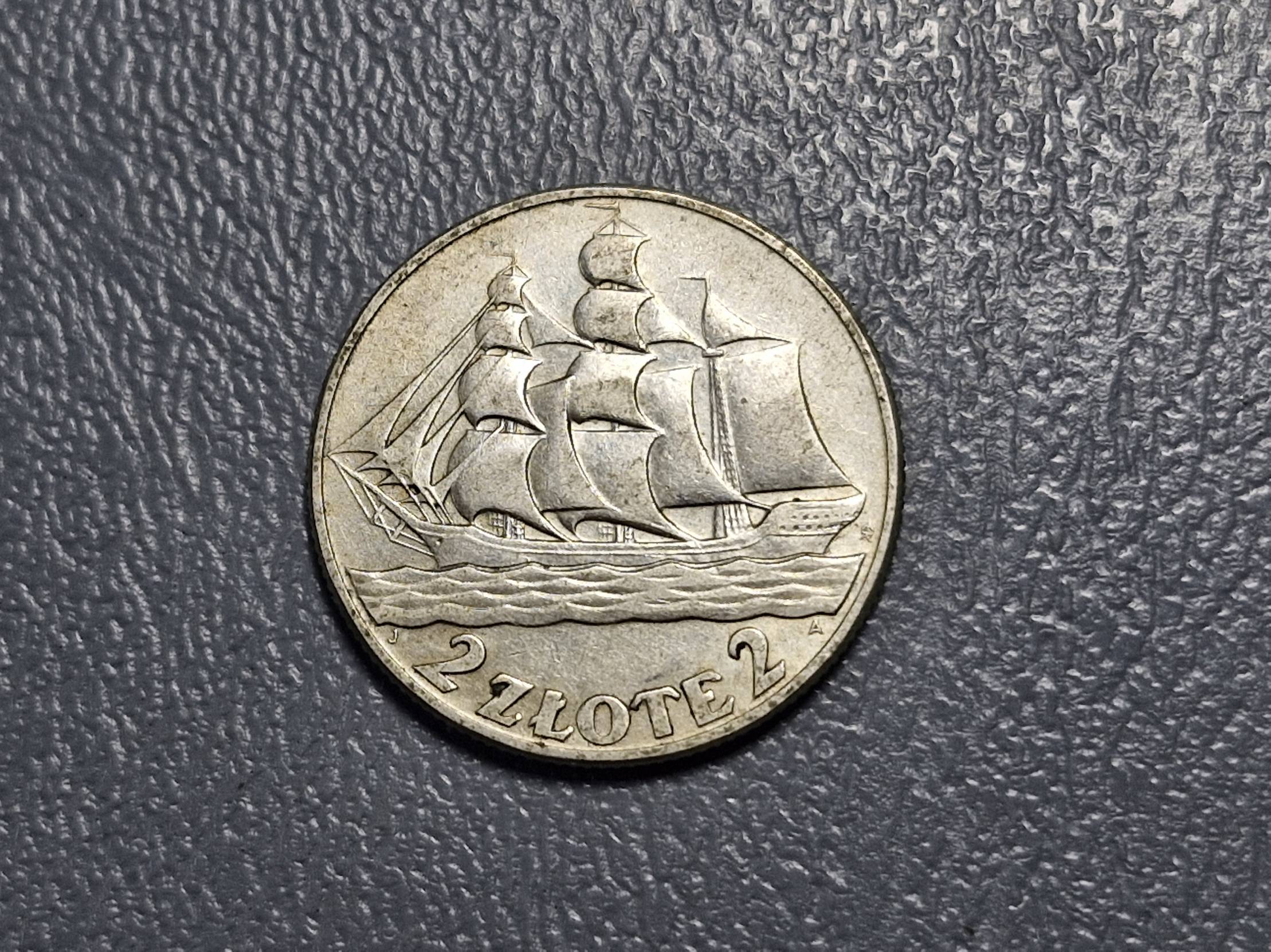 Lenkija 2 zlotai, 1936 Y# 30 Gdynės uosto 15 AG
