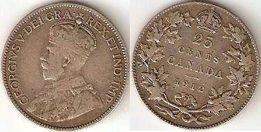 Kanada 25 cents 1912m.Sidabras,stovis geras