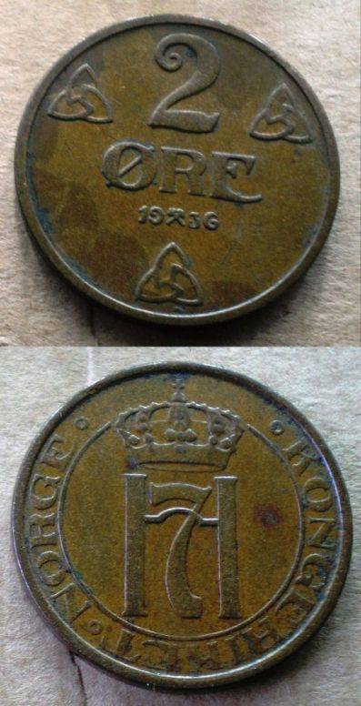 Norvegija 2 Ore 1936 Puiki Nuo 1 LT.