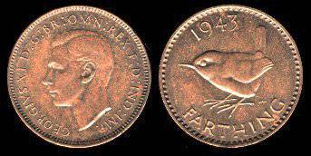 Didžioji Britanija 1 fartingas 1944,KM#843,VF
